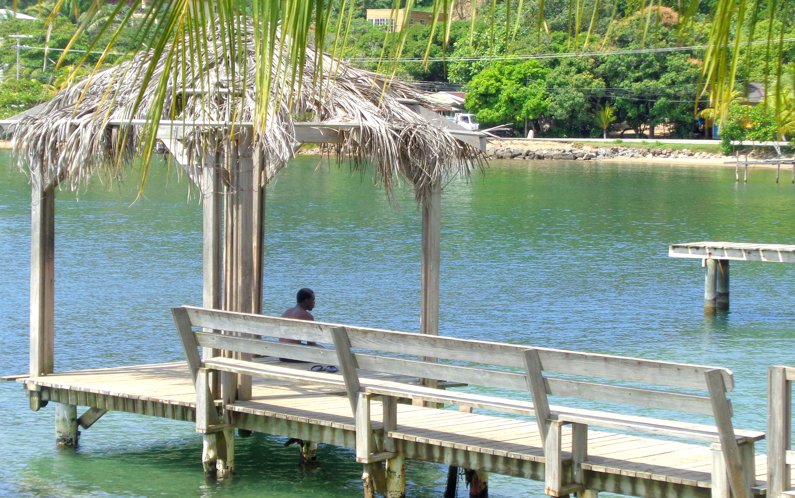 On passe devant le CAPTAIN JACK’S, restaurant de ceviches sur pilotis idéalement situé à 300m du débarcadère des ferries mais qui est malheureusement fermé et en vente lors de notre passage.
