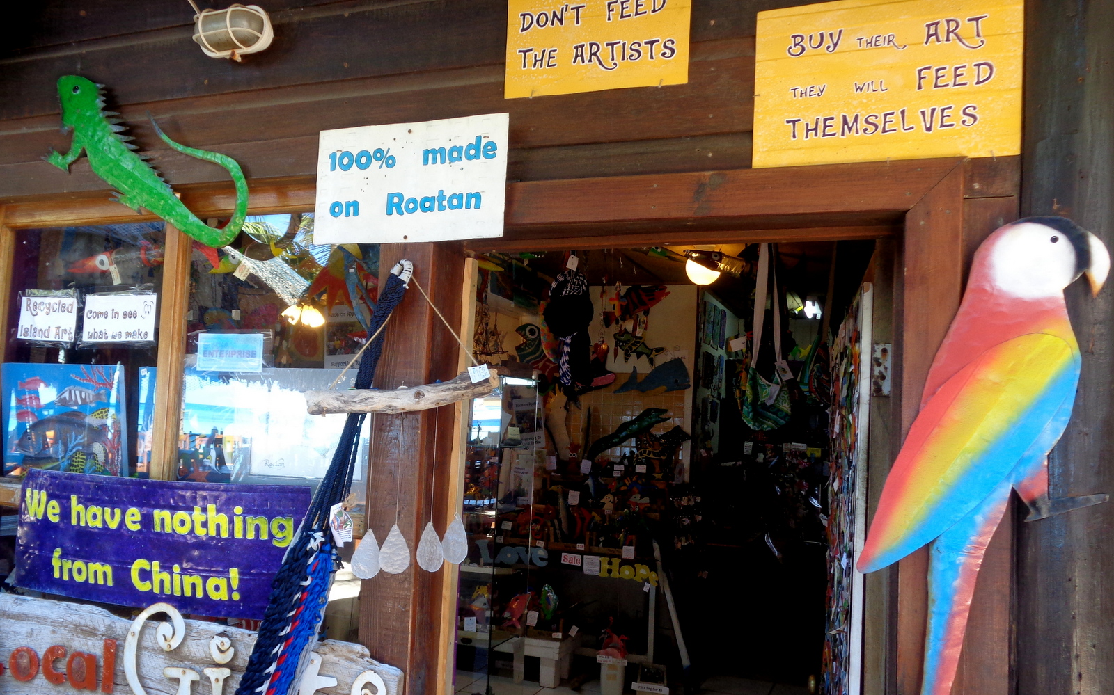 En face, il y a une boutique de rhums arrangés: la ROATAN RUM COMPANY où on peut goûter et acheter des cakes parfumés au rhum et plusieurs sortes de rhums arrangés: noix de coco, vanille, épices… à 25$ la bouteille, parfaits pour l’apéro au coucher du soleil sur la plage !!!
