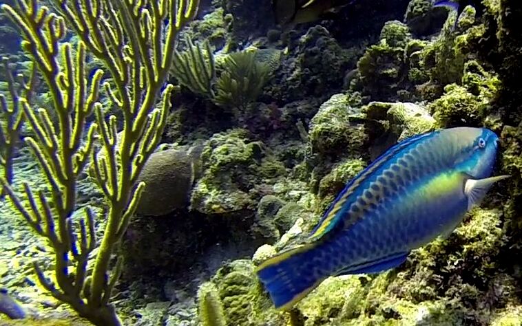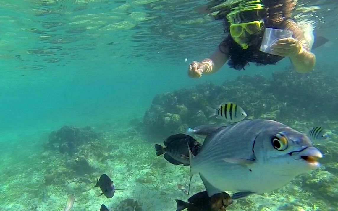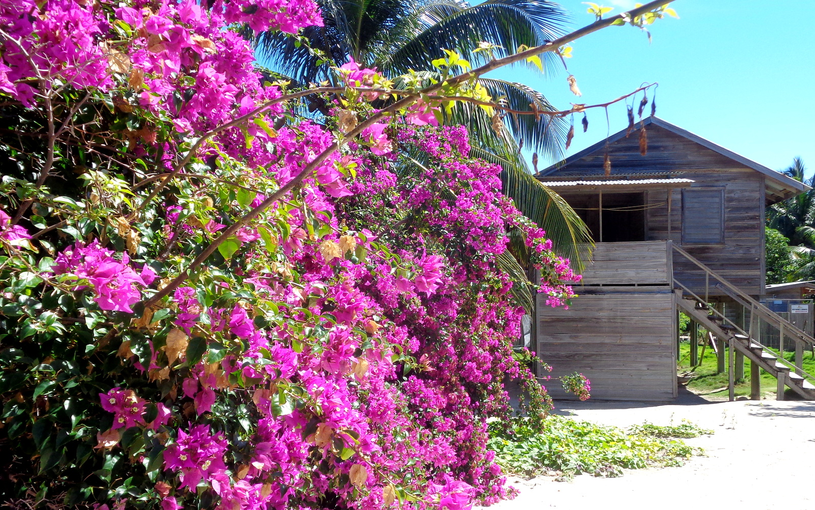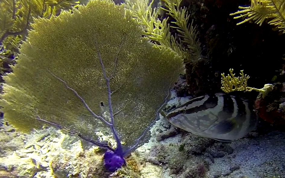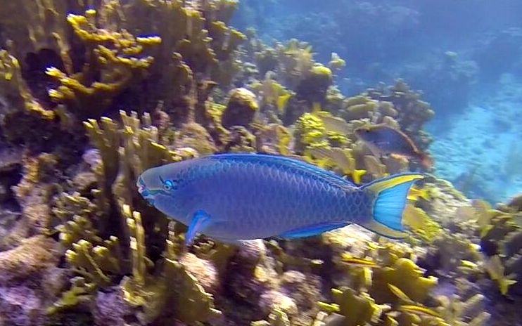 Il y a de beaux coraux juste devant la plage qui permettent de bien s’amuser rien qu’avec un masque et un tuba. On y a vu régulièrement des perroquets de toutes tailles, des barracudas, une raie pastenague et plein d’autres poissons colorés qui viendront autour de vous volontiers si vous leur apportez un peu de pain…