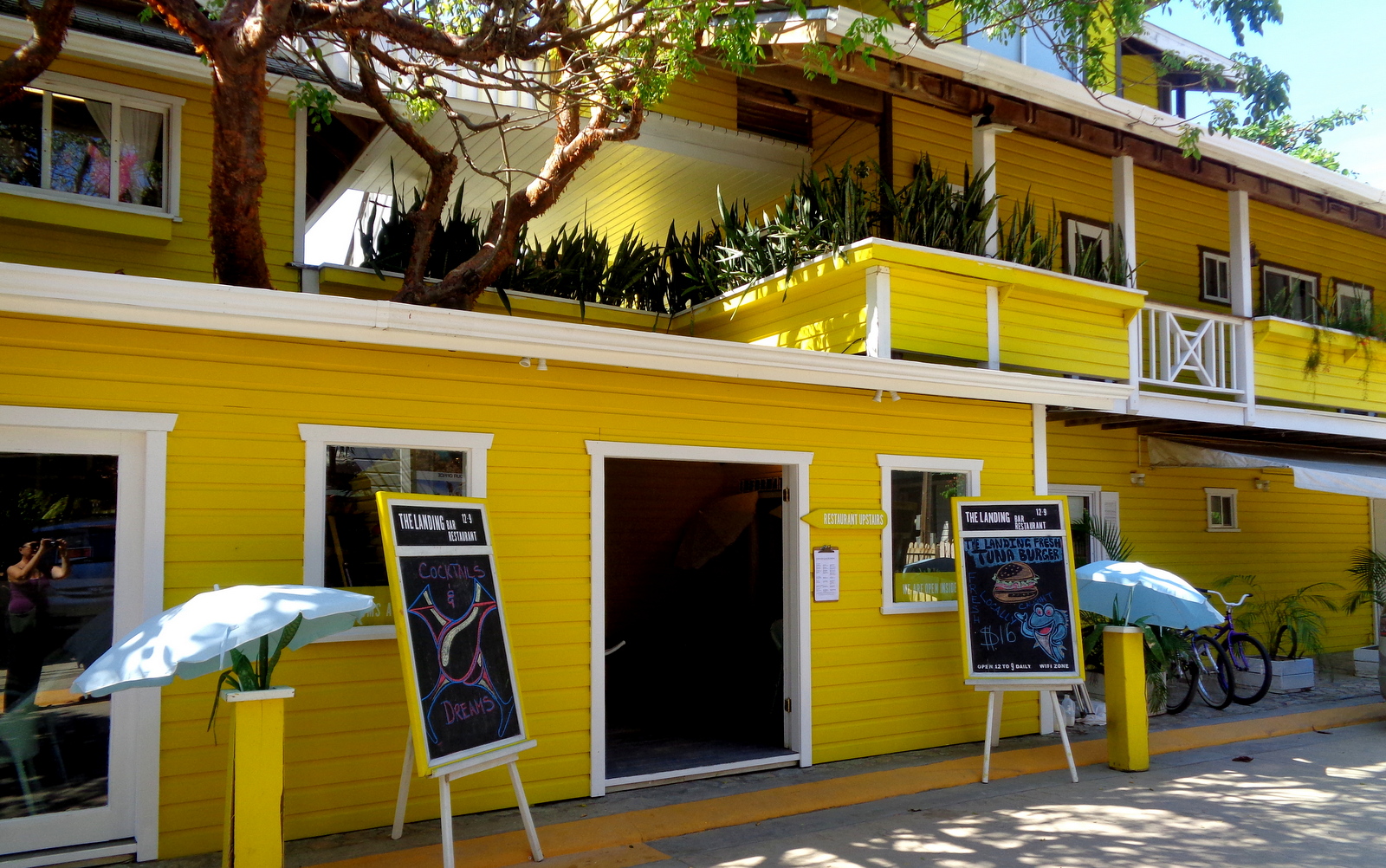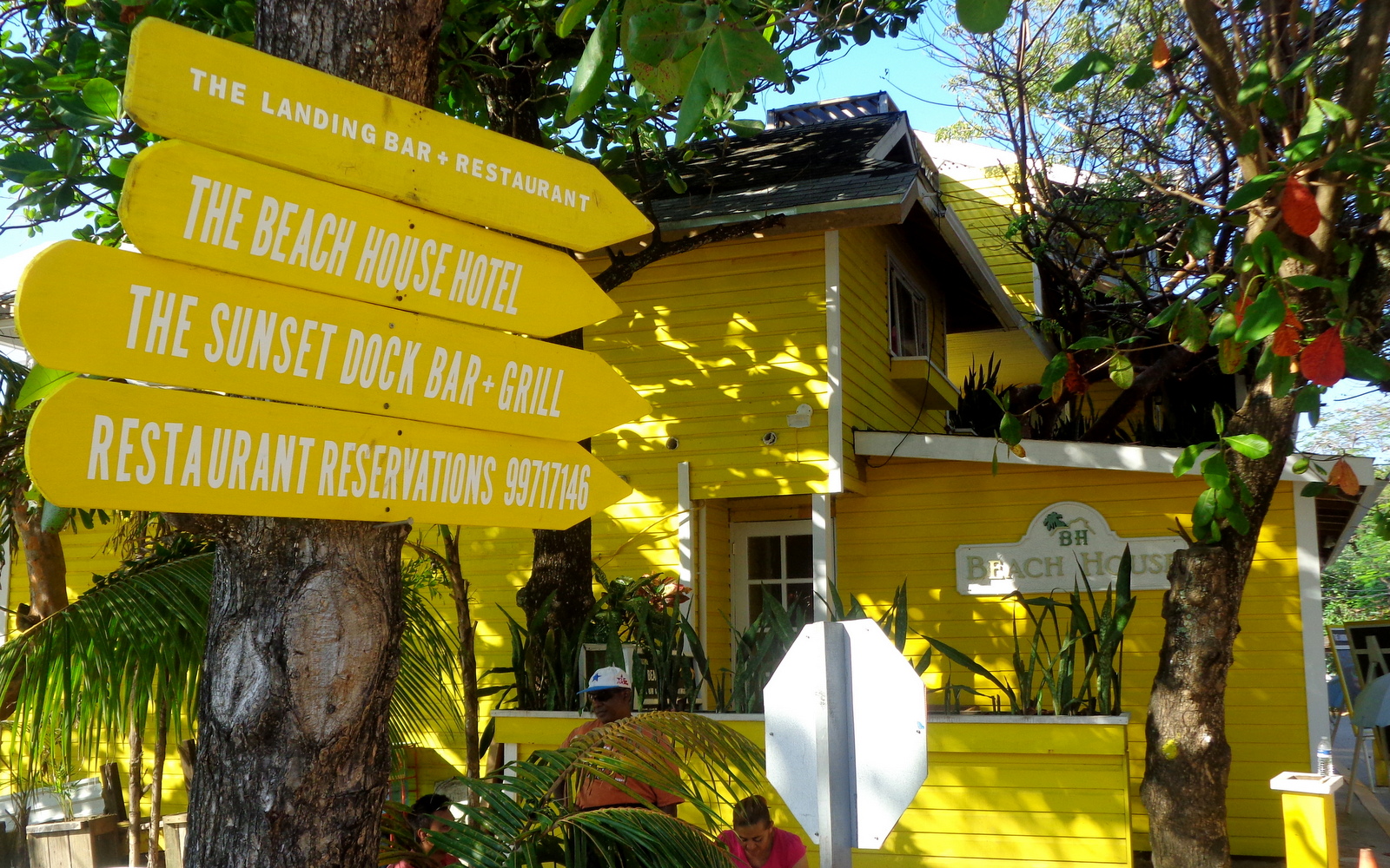 On ne peut pas le manquer avec sa grande façade jaune. Certainement, l’hôtel le mieux situé de West Bay: sur la plage, en plein centre, juste à côté du SUNDOWNERS, en face du coucher de soleil…Que des suites donnant sur la mer, pas donné mais… c’est un boutique hôtel! Il y a un resto très sympathique THE LANDING au 1er étage où nous avons mangé un excellent hamburger au thon frais…