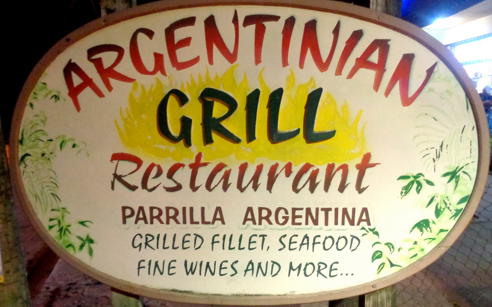Un peu plus loin sur la droite, le restaurant ARGENTINIAN GRILL. Recommandé par de nombreux guides de voyage, nous n’avons pas été enthousiasmés. C’est surtout un restaurant de viandes et les plats de poisson n’avaient rien d’exceptionnel si ce n’est le prix: 19$ le plat du jour: des tagliatelles aux crevettes…Ce n’était même pas bien servi! Grosse liste de vins à partir de 30$ la bouteille !!! Le bon point, c’est qu’on peut manger directement sur la plage de l’autre côté de la route.