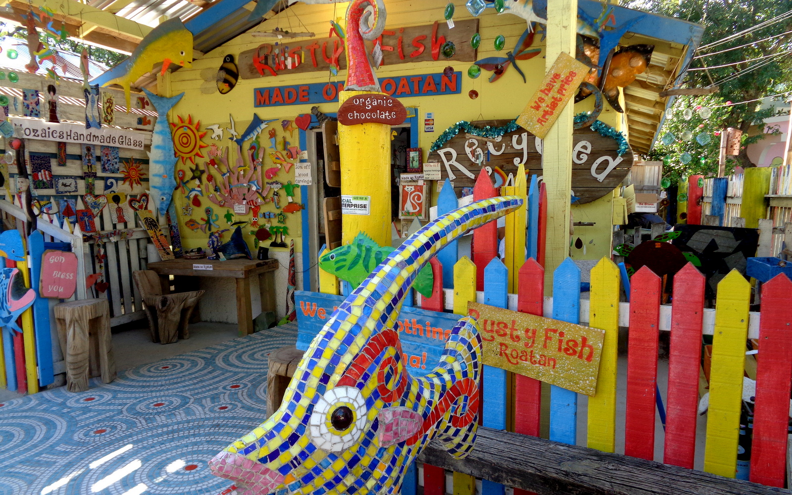 – RUSTY FISH , spécialisé dans le recyclage de matériaux par des artistes locaux. Il y a d’autres boutiques Rusty Fish dans l’île dont la principale sur la route de Sandy Bay.