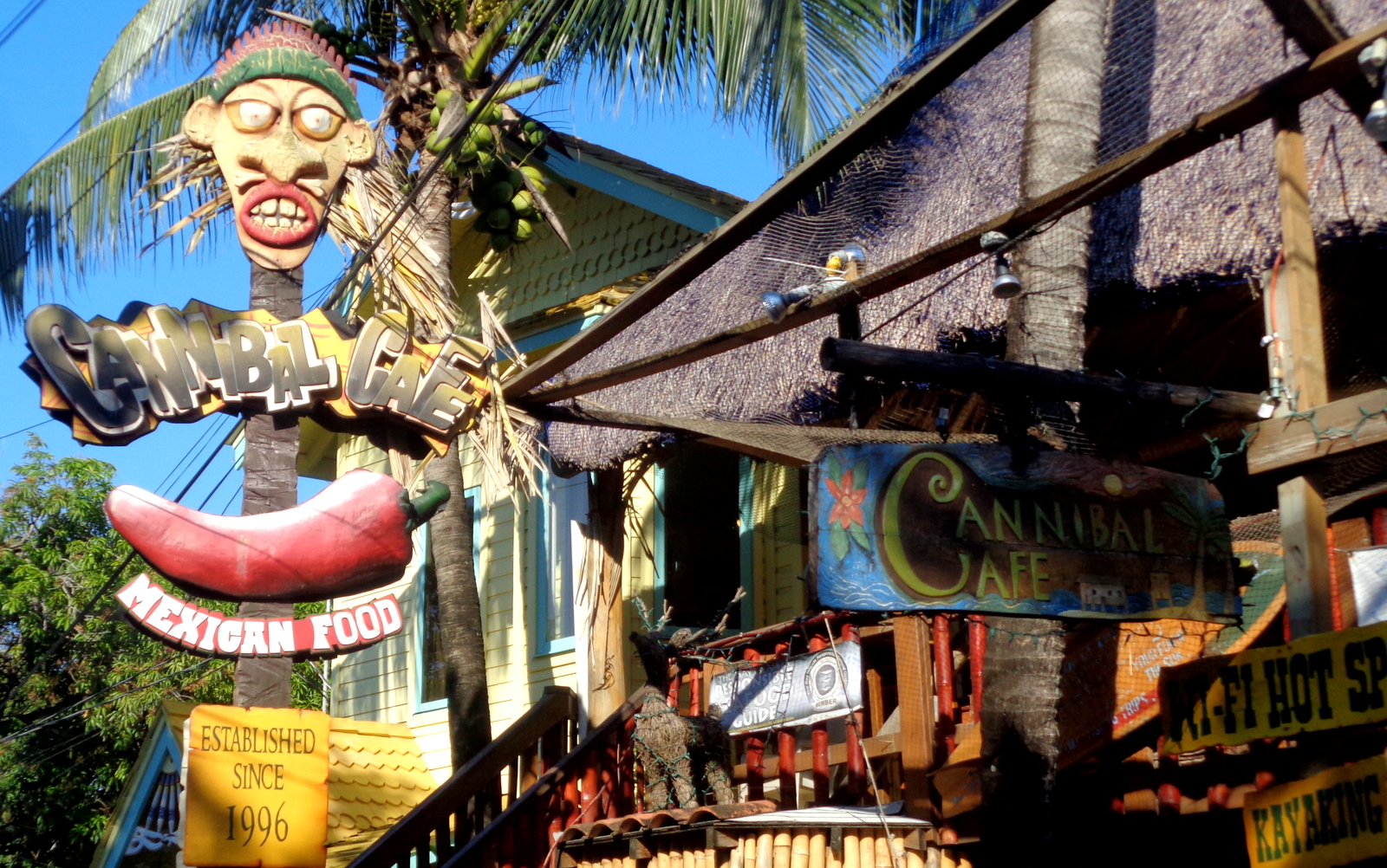 – CANNIBAL CAFE , un bar-restaurant mexicain avec une déco bien délire. Il est situé devant l’hôtel SEA BREEZE INN qui fait des forfaits chambre+ plongées intéressants.