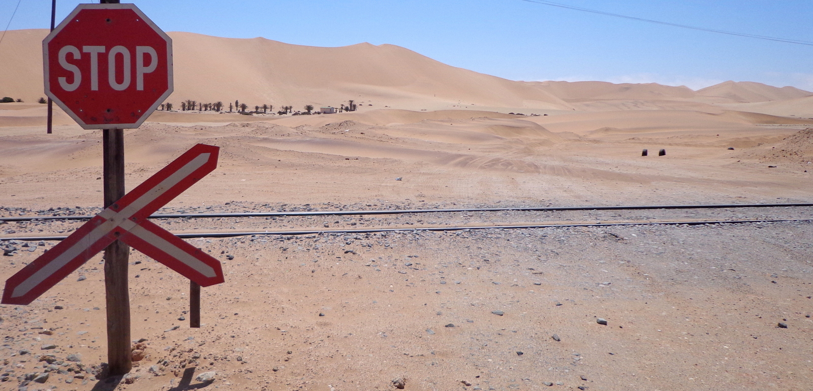 On passe un surprenant passage à niveau, à gauche: une sorte d’oasis qui est une aire de pique-nique, à droite le restaurant Dune 7 et le siège de l’activité.