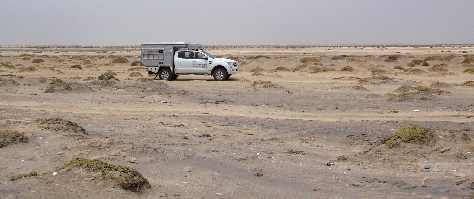Dans la préparation de notre voyage, on avait envisagé de continuer vers le nord pour longer la SKELETON COAST et atteindre les dunes qui chantent. En fait, il n’y a que la partie sud de cette côte que l’on peut espérer visiter avec un permis en entrant par la UGAB GATE à environ 187 kms au nord de Swakopmund et en en sortant par la SPRINGBOK GATE. C’est un permis pour traverser la zone dans la journée. Pour la partie nord où il y a les dunes qui chantent, on ne peut y entrer que si on a déjà une réservation pour le TERRACE BAY CAMP. Pour aller plus au nord, il faut prendre obligatoirement un tour qui coûte très cher. Le trajet le long de la côte est reporté par beaucoup comme étant particulièrement ennuyeux, on décide donc d’abandonner l’idée des dunes et de remonter par l’intérieur des terres jusqu’à Etosha.