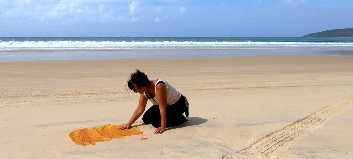 Les sables colorés sont incroyables !!! On compte environ 40 teintes de rouge, jaune, orange, marron, ocre et rouille dues principalement à de l’oxyde de fer. Les aborigènes s’en servaient dans leurs créations artistiques et on ne peut pas s’empêcher de laisser libre cours à notre imagination avec des couleurs aussi belles…