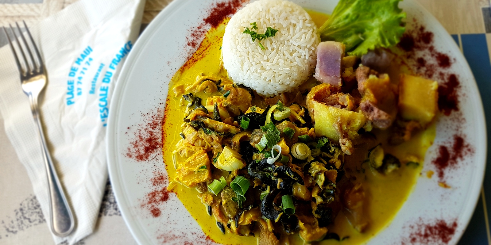 Le plat du jour (un curry de bénitier avec des légumes pays) y était excellent et le cadre, en bord de lagon, idyllique…