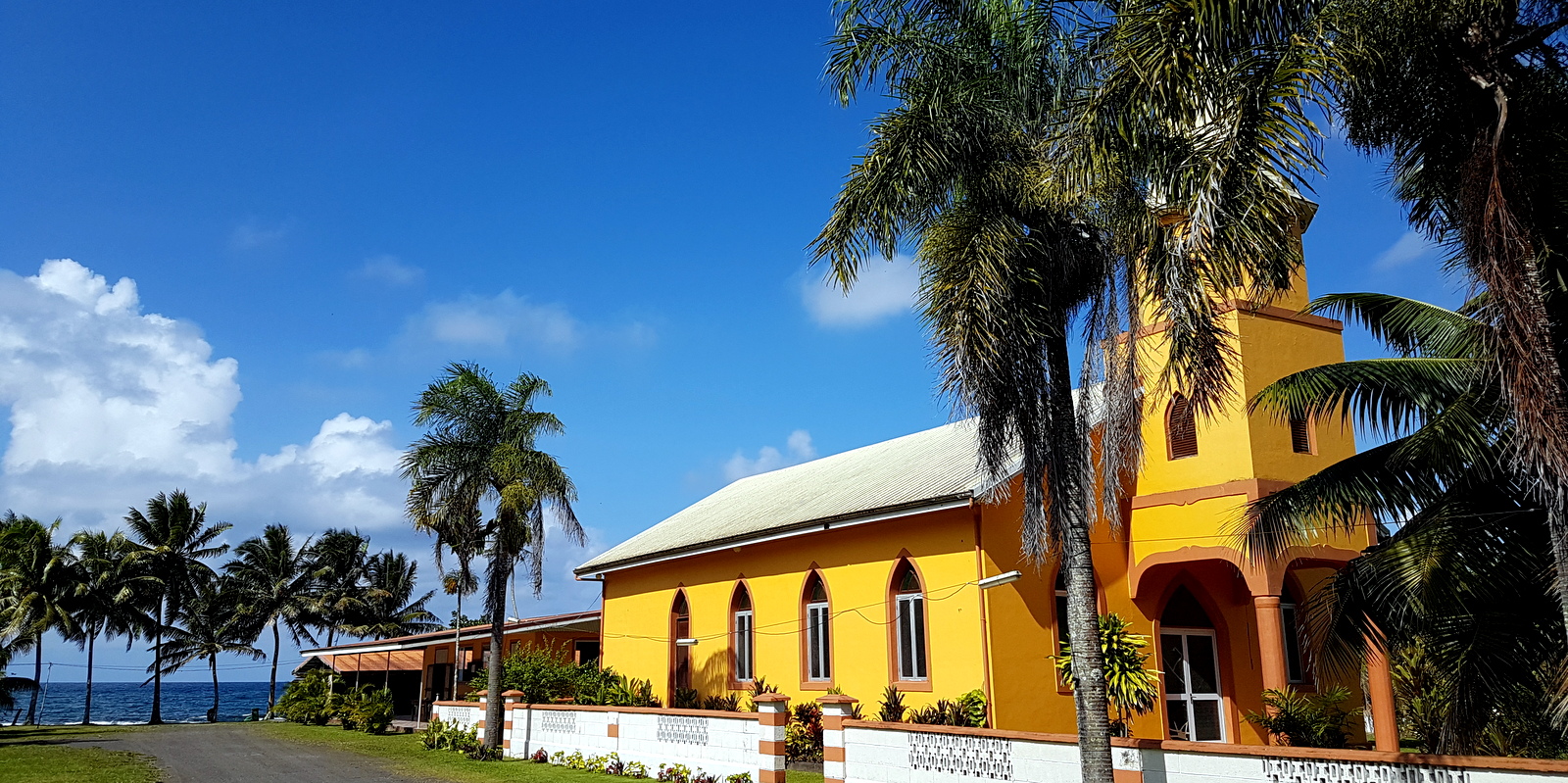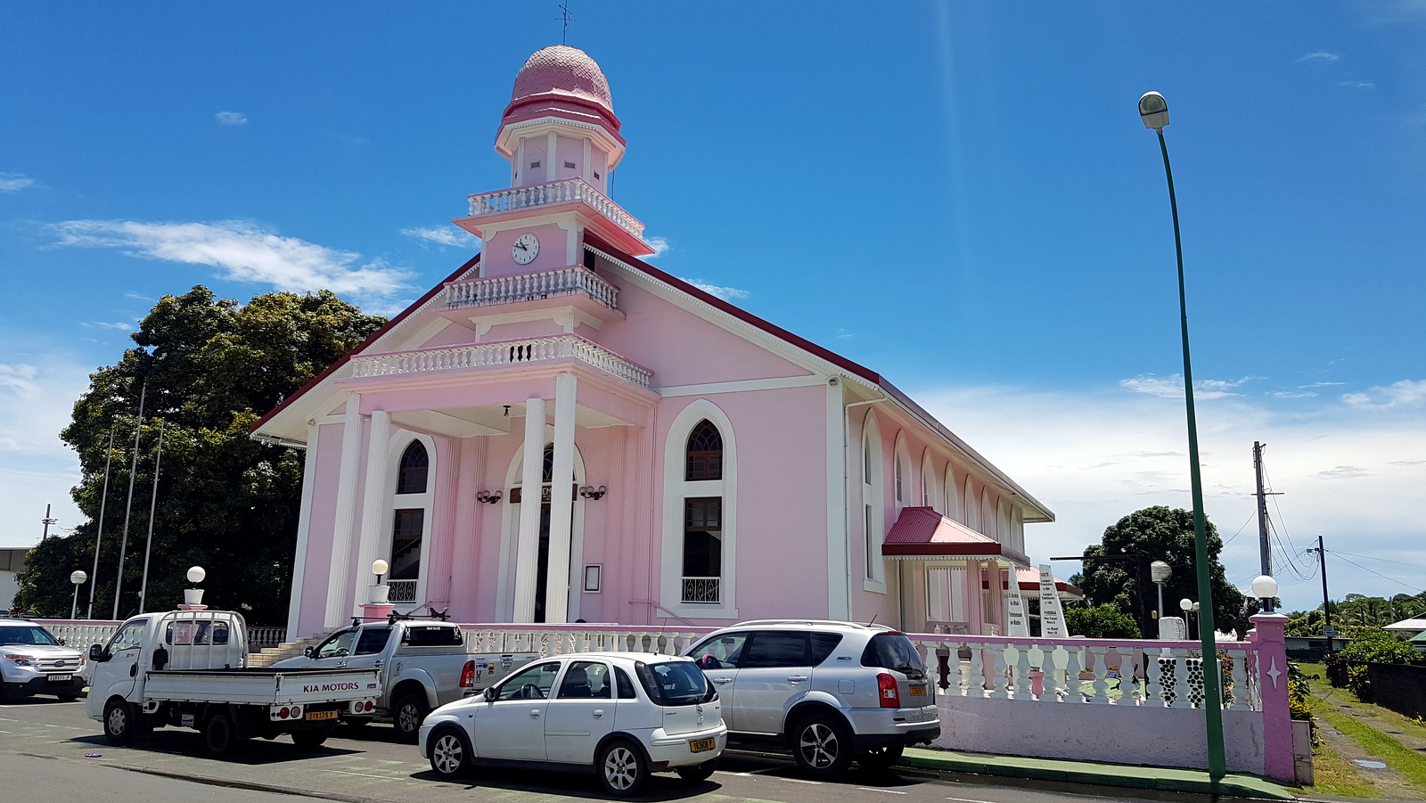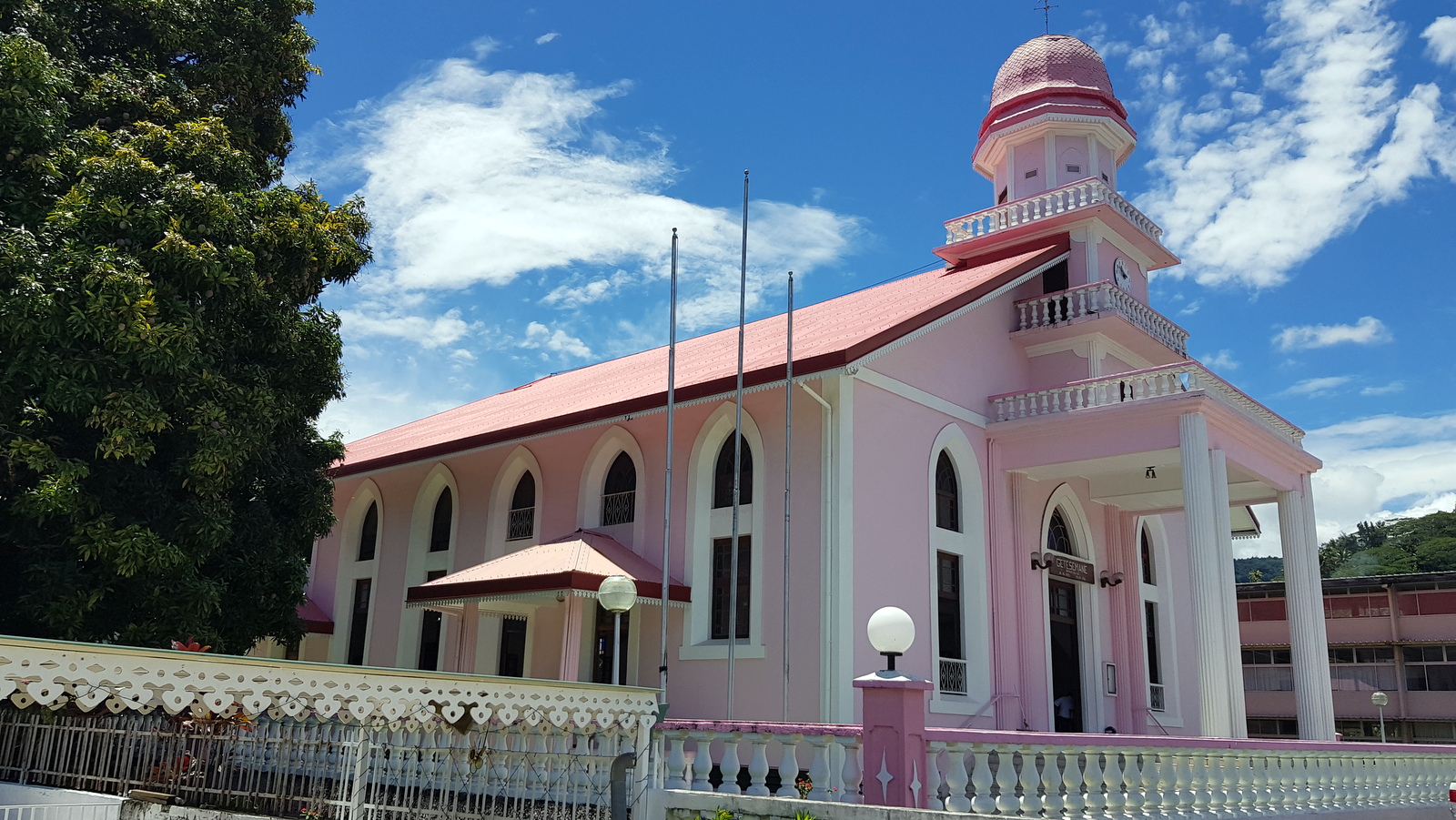 A l’entrée de Mahina, juste après le rond-point pour rejoindre la pointe, il y a une magnifique église rose qui est en fait un temple, le Temple protestant Getesemane. Elle a été repeinte en 2016 et si sa couleur surprend quelque peu et fait un peu penser à « l’église de Barbie » ou un gros gâteau d’anniversaire pour petite fille, elle a un potentiel photogénique surprenant avec le contraste du ciel bleu en fond !!!