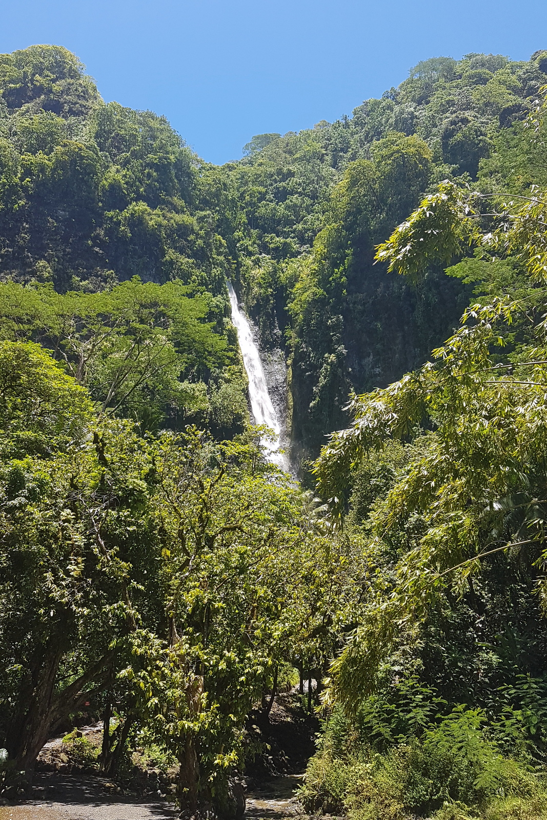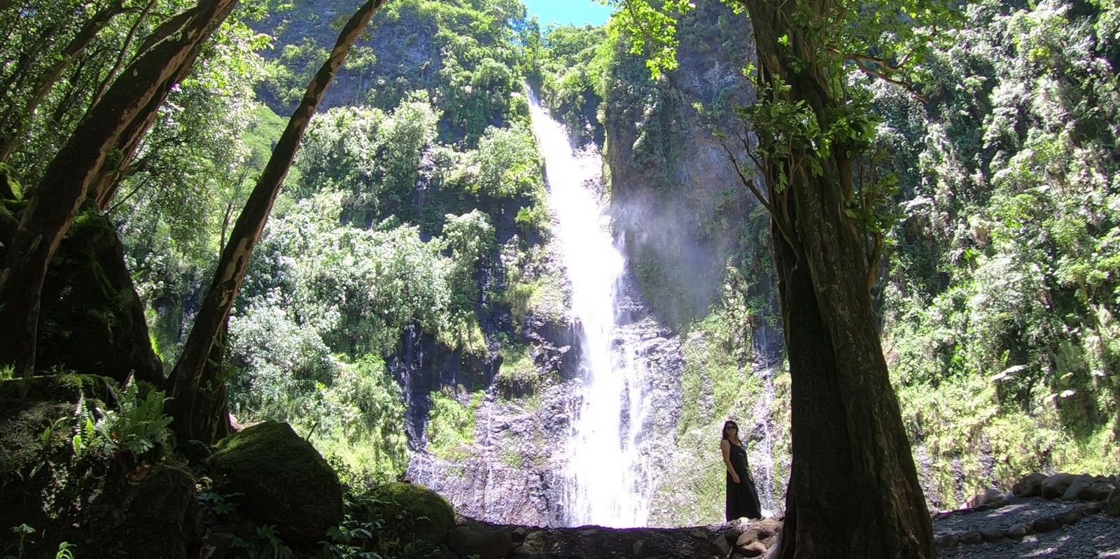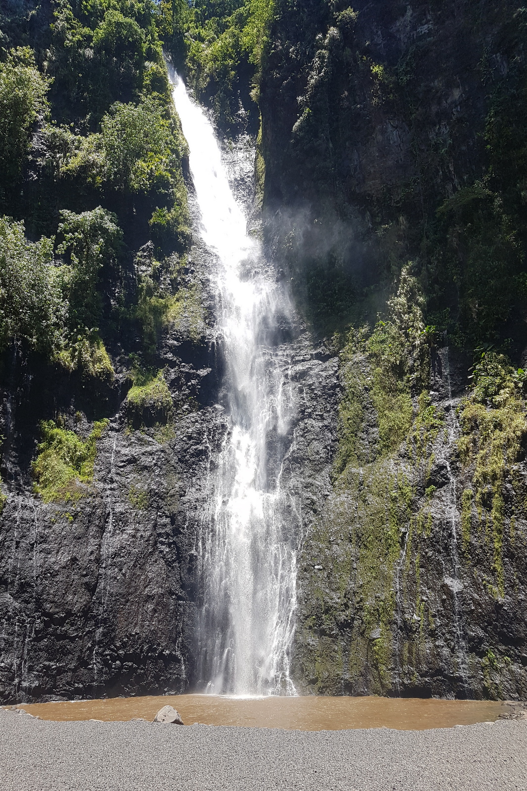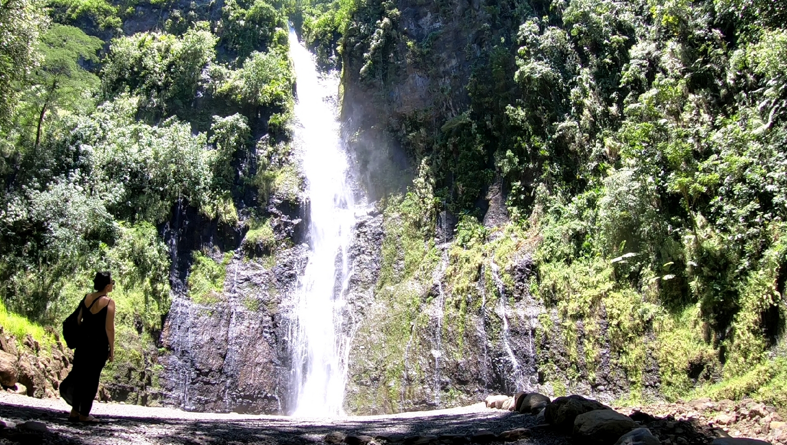 Si vous l’avez loupée parce que trop occupés par la conduite ou la vue sur la mer à gauche, vous pourrez toujours vous rattraper avec une autre occasion de vous baigner, la double cascade Vaihi, à Faaone. Sur le côté des 2 chutes d’eau, il y a un escalier qui permet d’aller jusqu’aux doubles vasques qui surplombent les chutes… Il se prolonge par un chemin de randonnée qui remonte la rivière et de nombreuses autres vasques propices à la baignade…