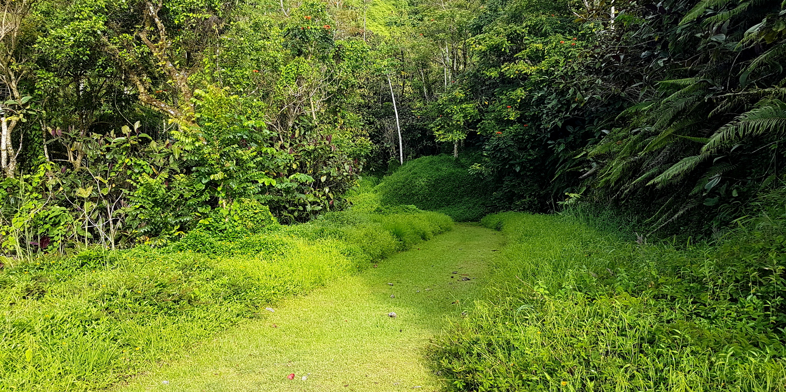 Juste après sur la droite, se trouve la route qui mène aux 3 cascades de Faarumai. Malheureusement, suites aux intempéries de 2015 et des éboulements qui s’en sont suivi, on ne peut accéder qu’à la 1ère! C’est bien dommage parce que tout le monde nous avait prévenus que c’est la 3ème qui est la plus belle et la plus praticable pour la baignade. On ne peut même pas tenté d’y aller car les chemins d’accès sont même camouflés !!!