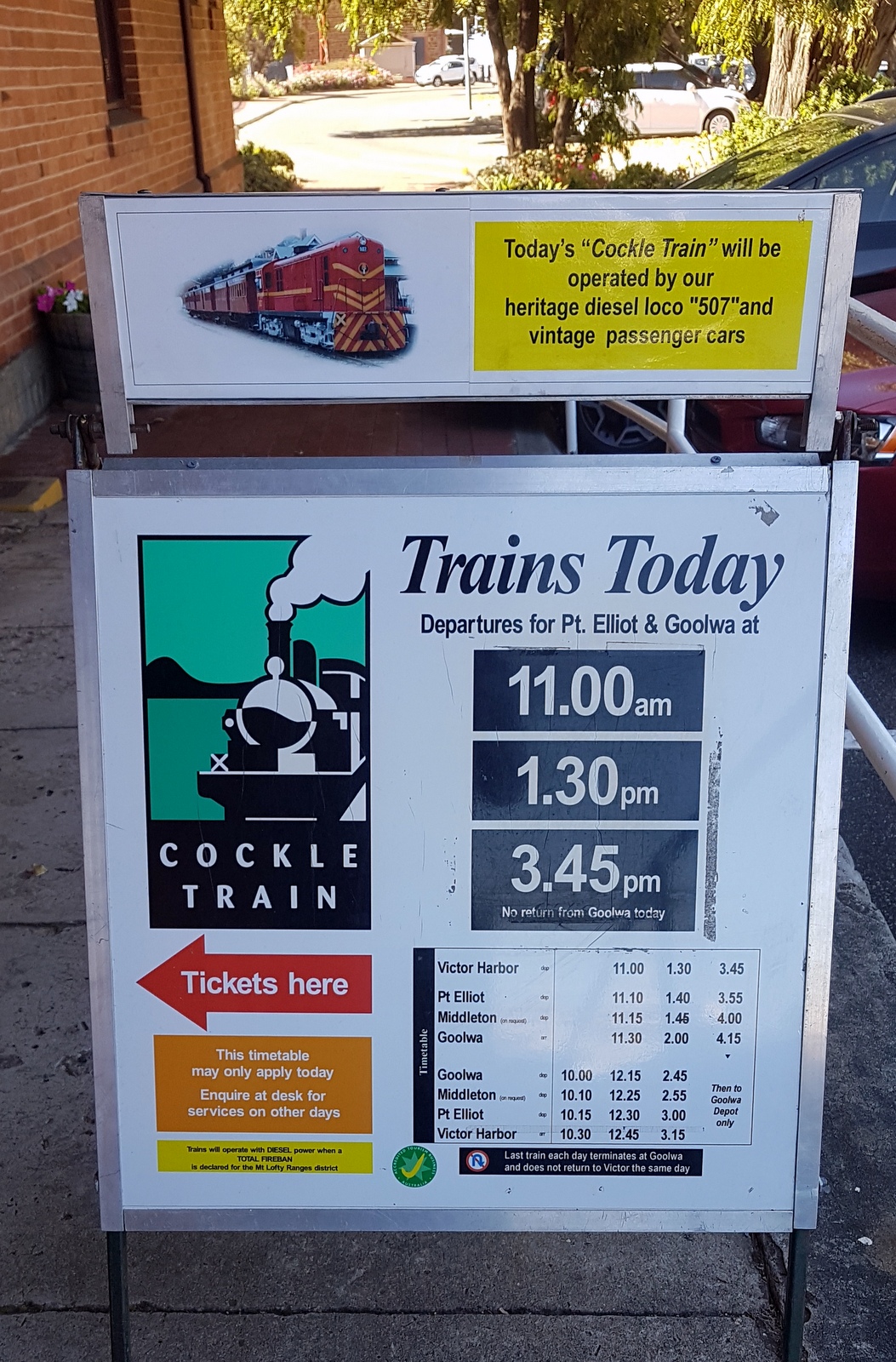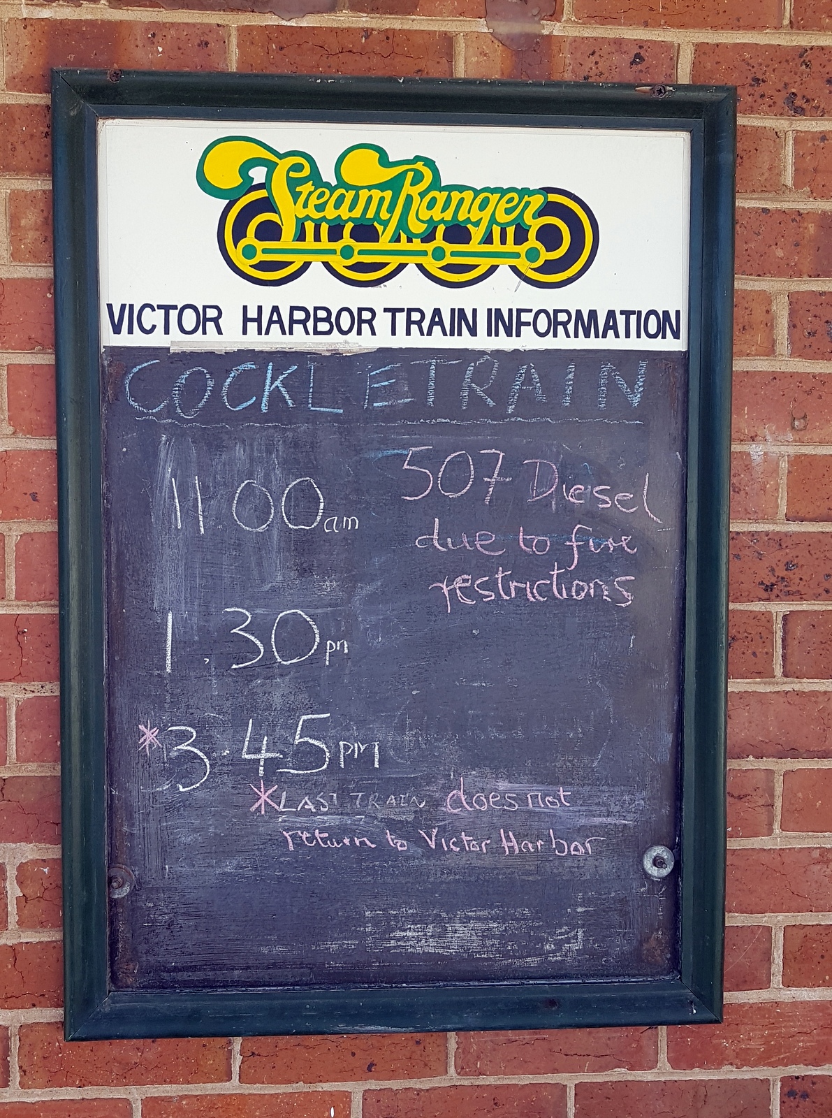 On peut prendre ce train en aller simple ou aller-retour et dans les 2 sens. On a fait l’aller-retour Victor Harbor-Goolwa-Victor Harbor mais si on avait su qu’on pouvait embarquer un vélo, on aurait fait l’aller simple pour ensuite revenir en vélo par l’ENCOUNTER BIKEWAY, une magnifique piste cyclable et piétonne qui longe, elle aussi, la côte de Goolwa à Port Harbor.