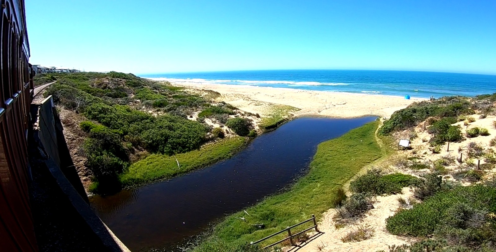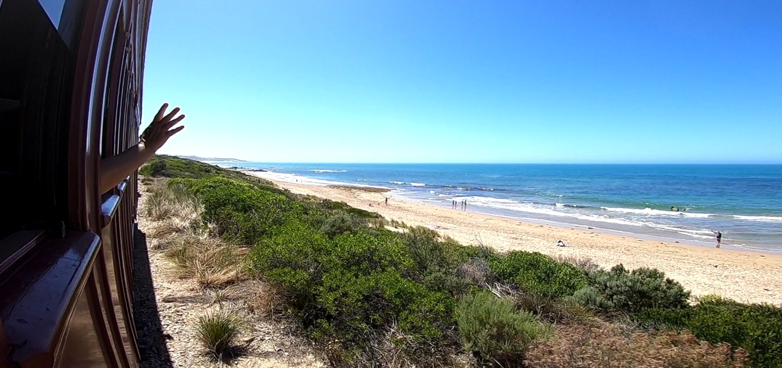 Le train chemine le long de toutes les plages et les paysages sont magnifiques! C’est amusant de voir tous les gens sur ces plages le saluer à son passage et entendre le train siffler en retour… N’oubliez donc pas de les saluer aussi…