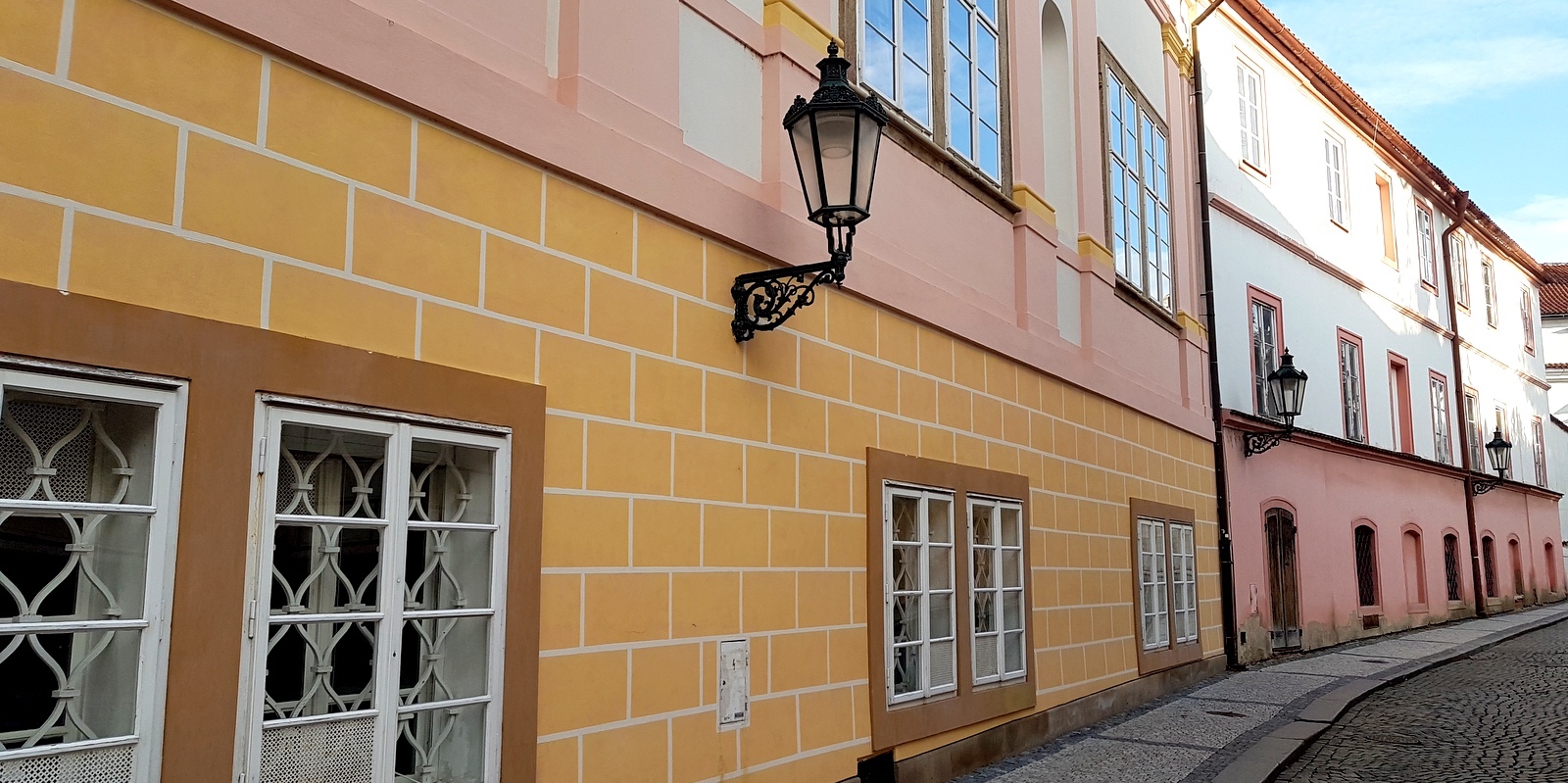 En continuant de descendre, via un majestueux escalier, on trouve 3 hôtels: le Golden Star, le Red Lion, ou le U Krále Karla que je vous recommande si vous cherchez un hébergement à un tarif modéré dans des bâtiments historiques avec un emplacement unique à Prague. Il faut tout de même garder en tête qu’il faudra solliciter vos mollets pour rentrer vous coucher le soir à moins de vous faire déposer par le tram 22 un peu au dessus et redescendre…