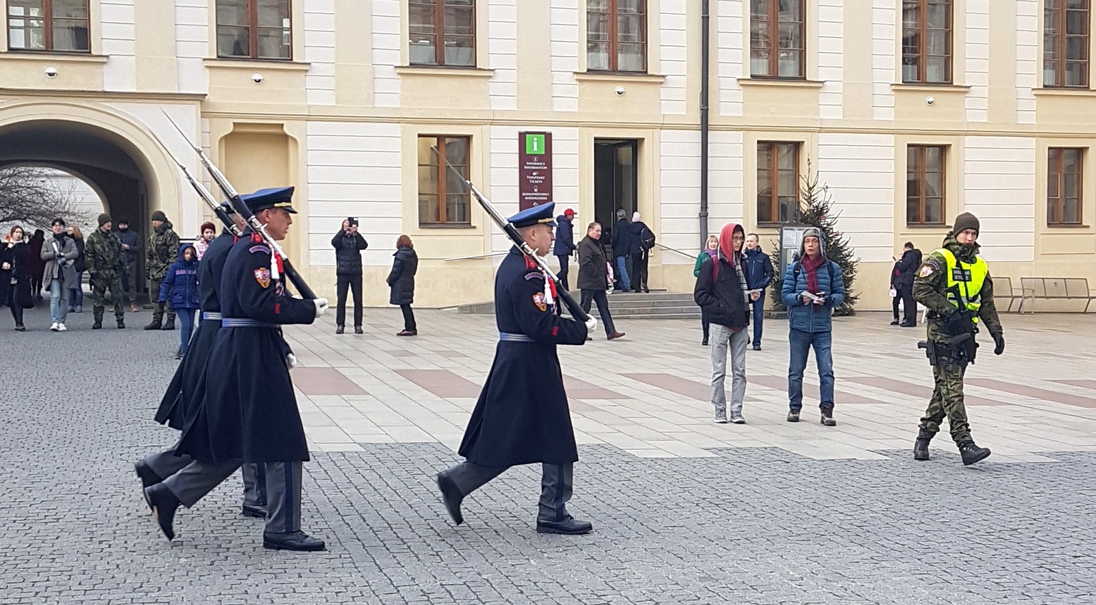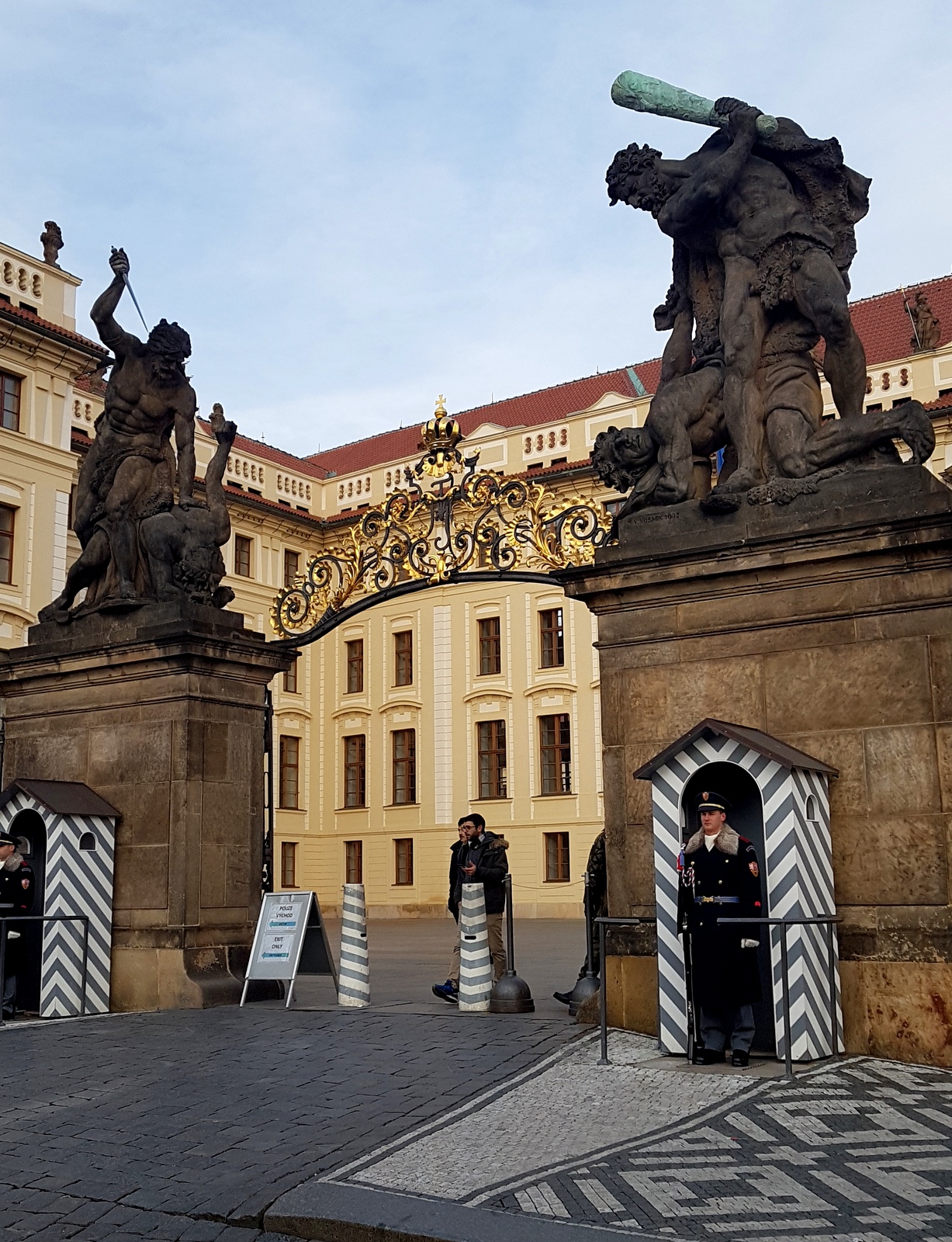 C’est donc par l’entrée « Pohorelec », la principale à l’ouest, sur la place principale (Hradcanské námestí) et la Porte des Géants précédant la cour d’honneur qu’on entre dans le château. A noter que quand on vient directement de la Vieille Ville avec le tramway n°22, c’est par l’entrée « Prazky Hrad » au nord qu’on pénètre dans le château !!!
