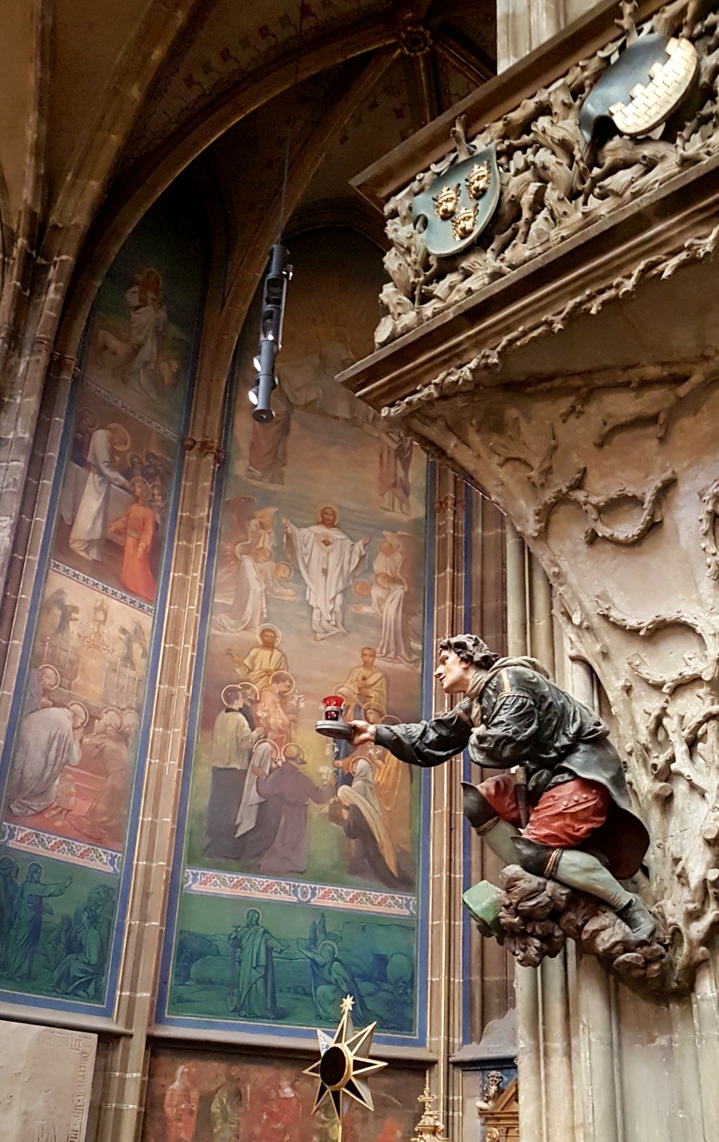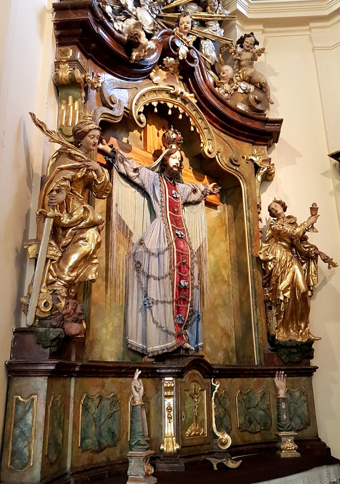 Ces chapelles sont dédiées à différents saints dont une, à Sainte Wilgeforte (Svata Starosta), une femme à barbe qui, selon la légende, aurait été crucifiée par son père après qu’elle avait prié pour qu’une barbe lui pousse afin d’éviter d’épouser le païen qu’on lui avait désigné comme époux. Elle m’a inévitablement fait pensé à Conchita Wurst qui a gagné le concours de l’Eurovision en 2014 !!! Sans malice aucune de ma part…