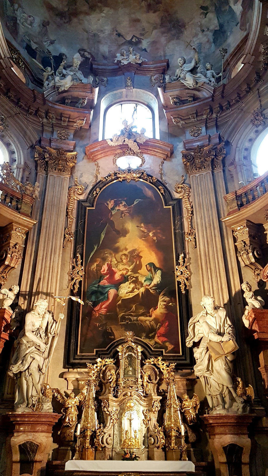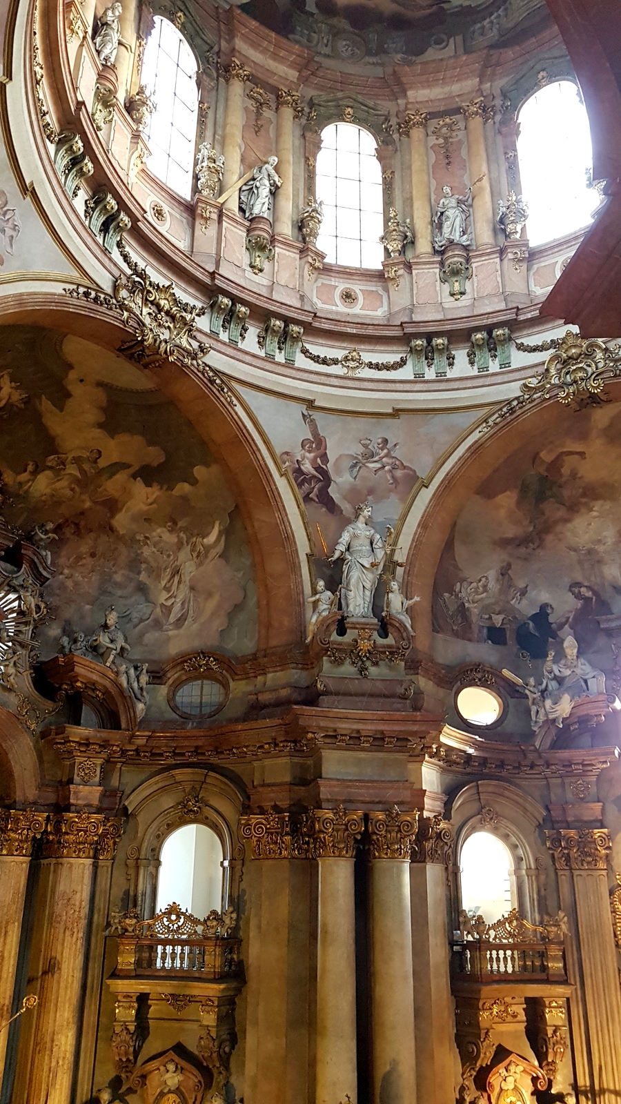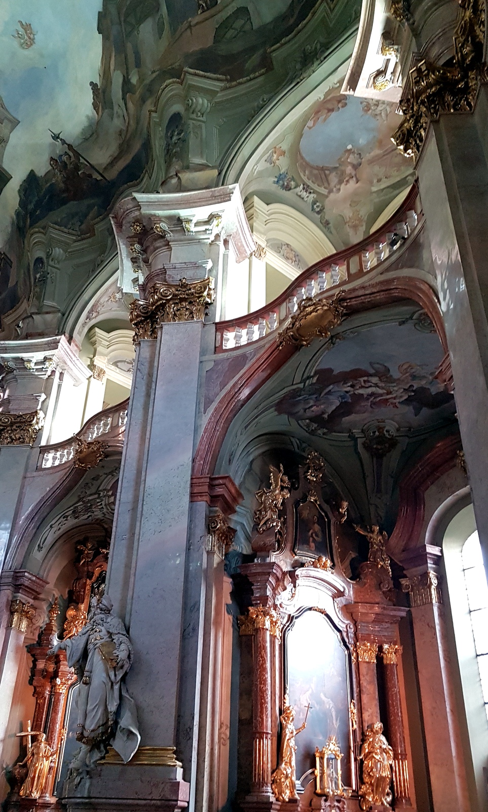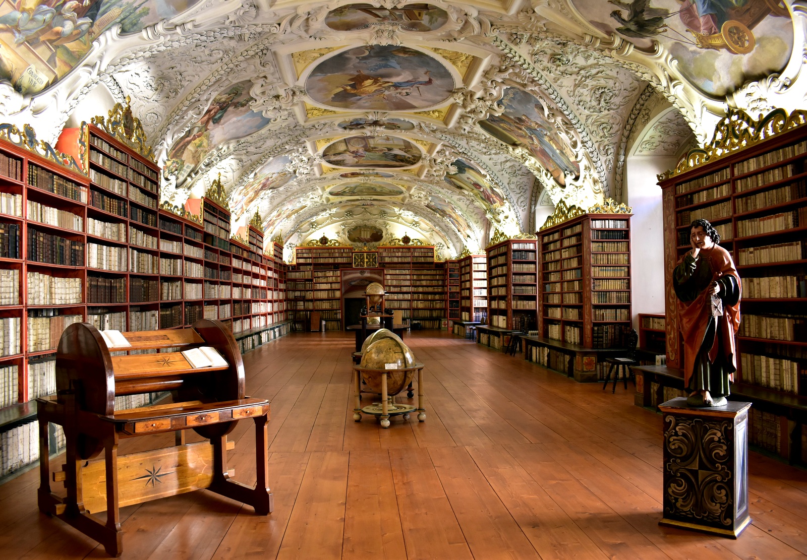 La salle philosophique ((1794) sur 2 étages, a un plafond orné d’une belle fresque qui retrace « l’évolution spirituelle de l’être humain ». La salle de théologie, la plus ancienne (1670’s) et la plus belle, est celle qui ressemble le plus à celle du Clementinum. Elle est également, ornée de fresques au plafond et abrite des globes terrestres et célestes réalisés au 17ème siècle!!! On peut en faire une visite en 3D sur le site officiel.