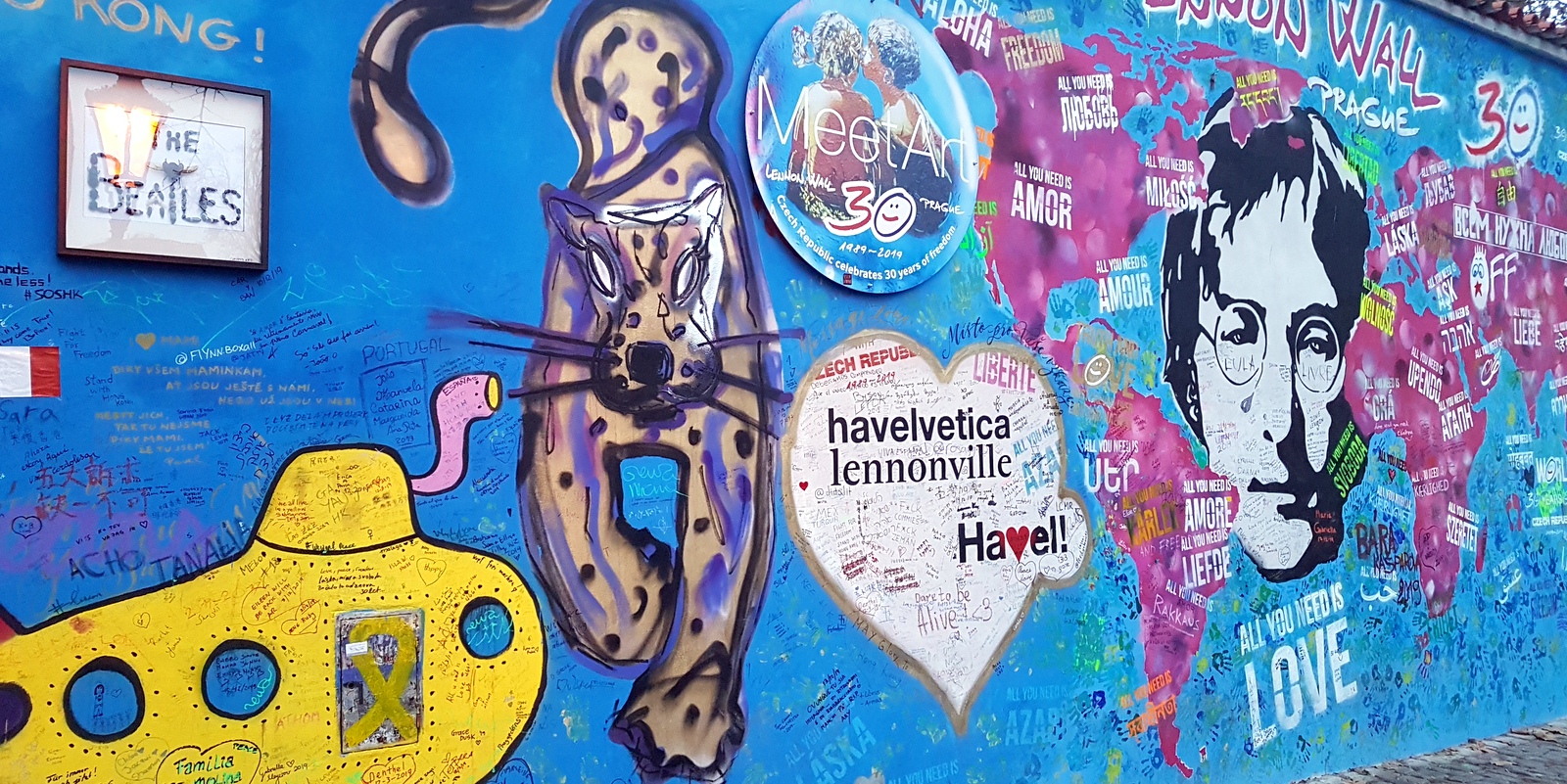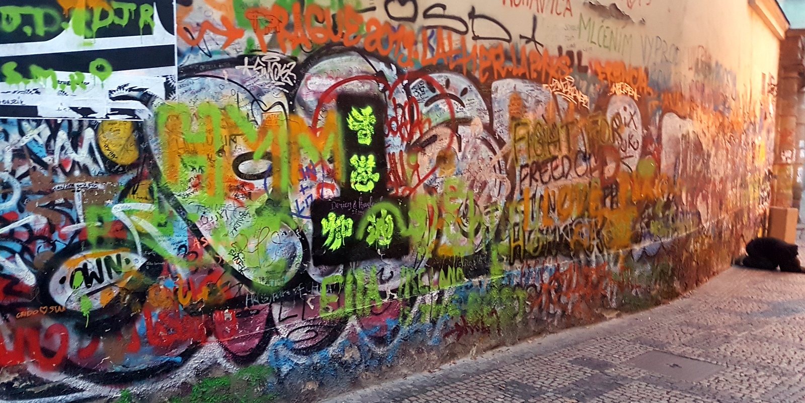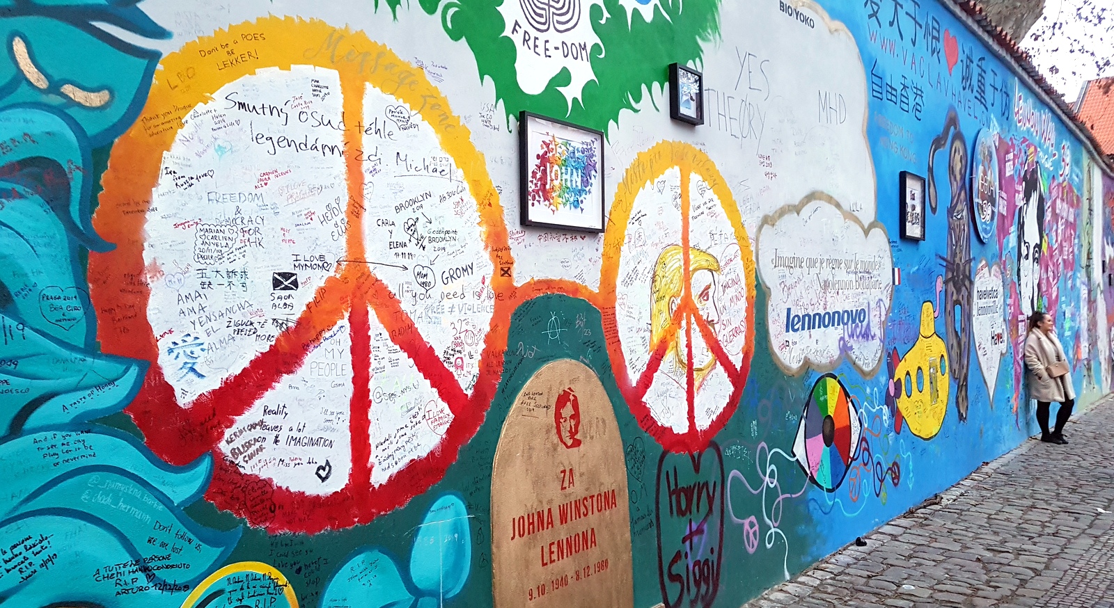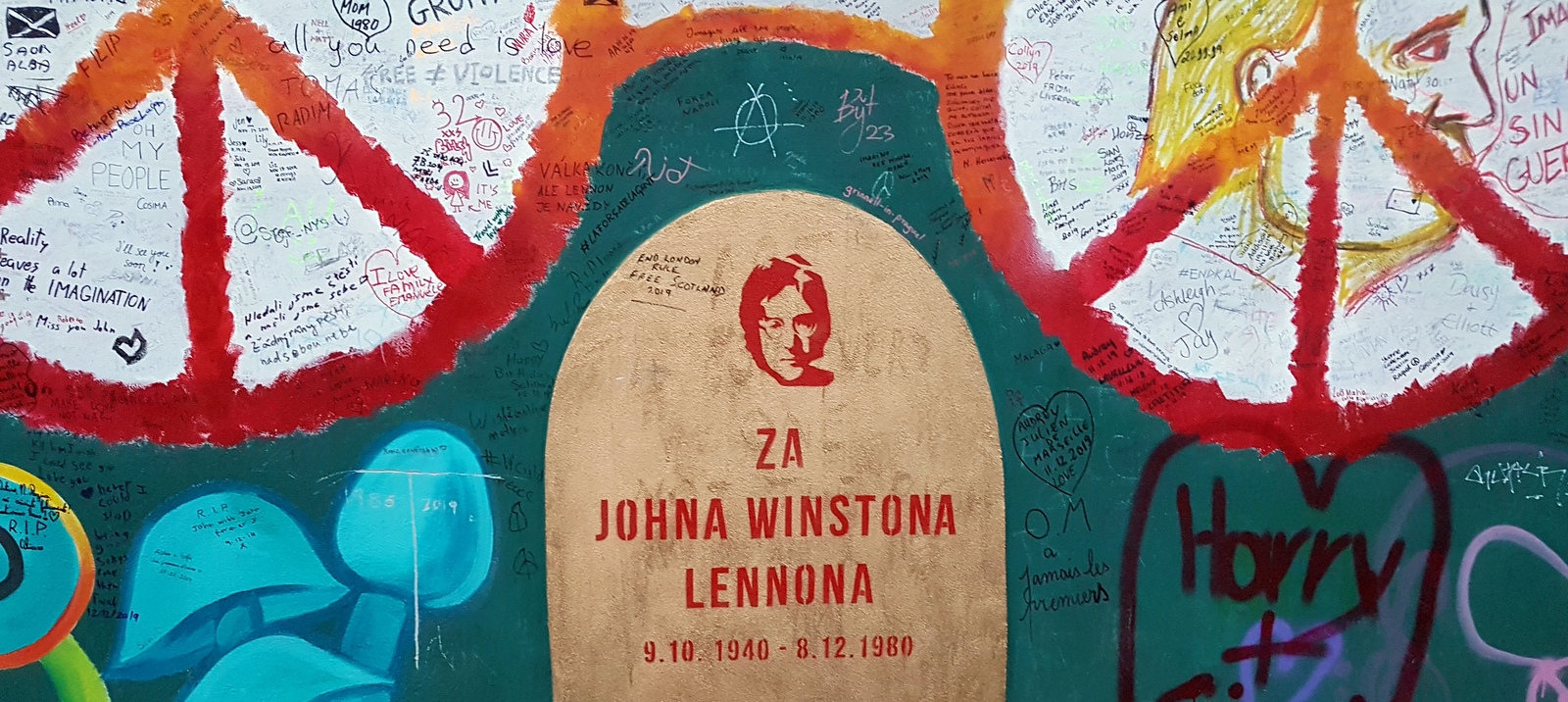 C’est après son assassinat le 8 Décembre 1980 que la première image de John Lennon, qui était devenu un héros pacifiste pour beaucoup de jeunes tchèques, a été peinte sur le mur. D’abord une orientation politique pour les jeunes de Prague, il est devenu un support artistique pour de nombreux artistes et touristes…