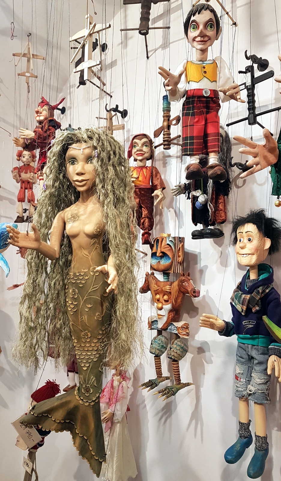 La boutique juste avant, MARIONETTES UNDER THE BRIDGE, est encore mieux achalandée et les marionnettes sont toutes aussi belles et un peu moins chères, je trouve… On peut également les acheter en ligne sur leur site et se les faire expédier.