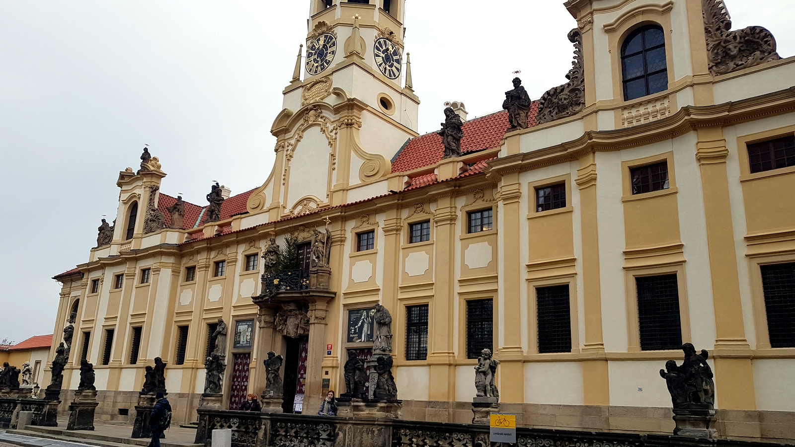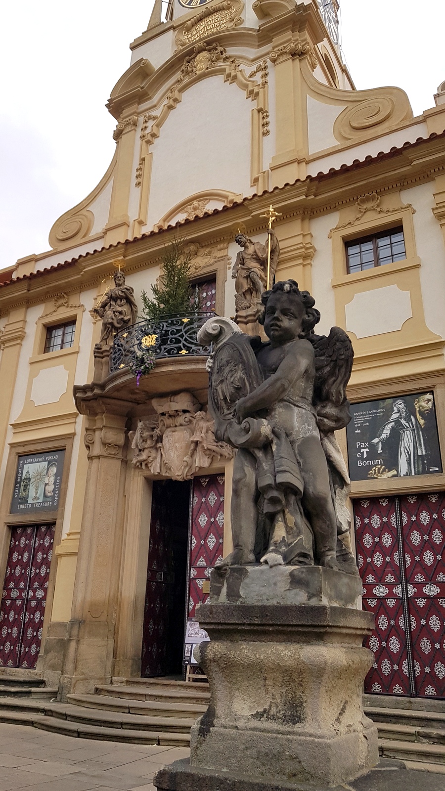 Plutôt que d’aller vers la Tour de Pétrin, la « Tour Eiffel » de Prague, on se dirige vers notre prochaine destination en direction du château: l’Eglise Notre Dame de Lorette en passant par le petit passage qui longe le musée des miniatures.