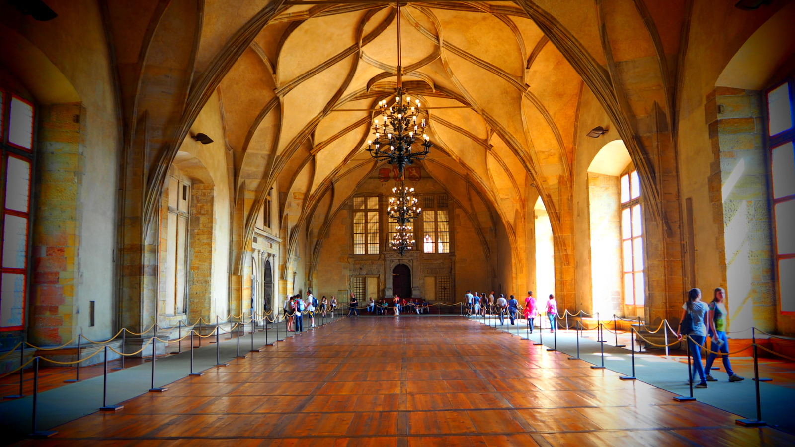 L’espace le plus impressionnant de ce palais est la salle Vladislas, une immense salle de cérémonie aux dimensions exceptionnelles pour l’époque (13 m de hauteur, 62 m de long et 15 de large !) mais il ne faut pas oublier qu’à l’époque, on circulait à cheval à l’intérieur du palais !!! Sa voûte et ses rosaces sont extraordinaires.
