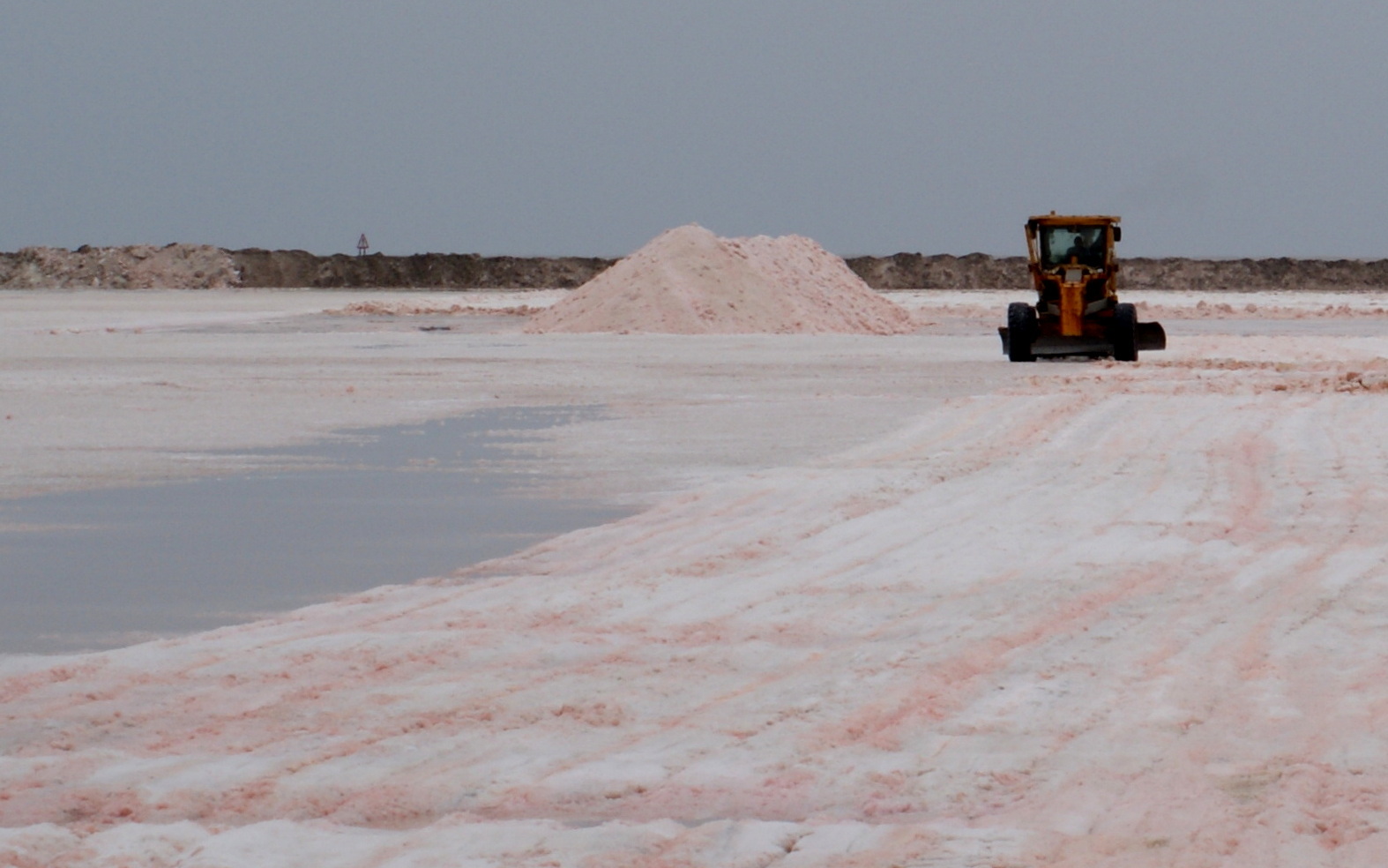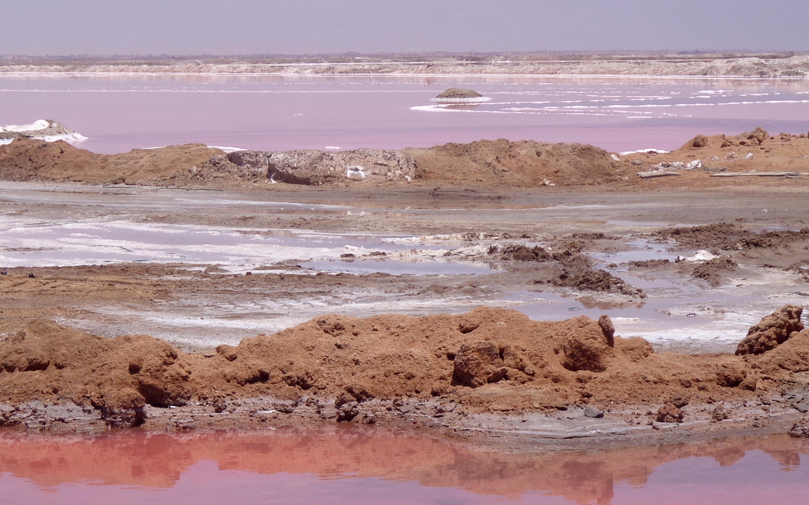 On ne peut pas se tromper, la route va directement à l’usine de traitement de sel. Il faut la contourner et on se retrouve sur un chemin étroit qui traverse une symphonie de roses: d’un côté les marais salants et de l’autre les lagunes avec une multitude de flamants roses. On en prend plein le yeux !!!