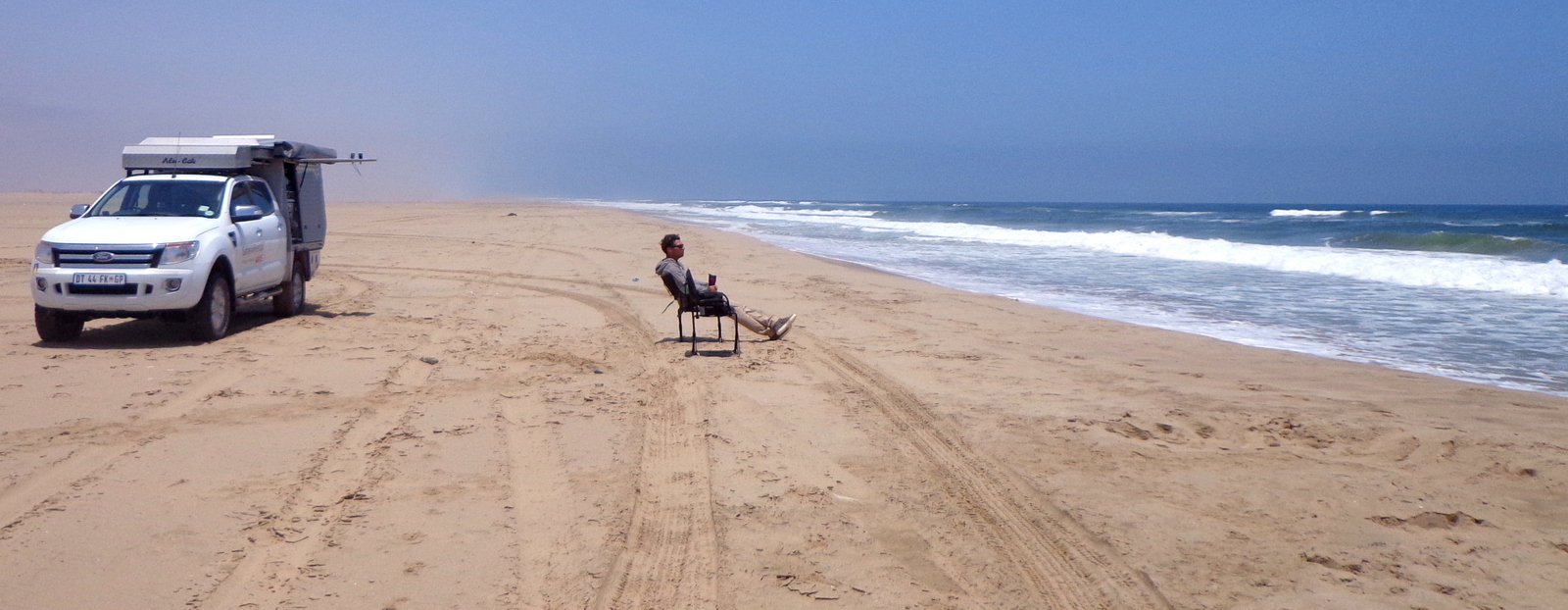 Tout au bout, il y a une plage immense… Aucune interdiction, on y va donc en voiture, on s’arrête au bord de l’eau et on sort les transats…