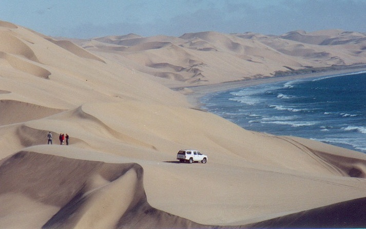 Attention: Si on peut aller jusqu’aux flamants roses en voiture de tourisme, il faut absolument un 4X4 avec les pneus dégonflés pour envisager d’aller à Pelican Point . Même chose plus un permis d’entrée que l’on peut obtenir aux offices de tourisme de Walvis Bay ou Swakop pour Sandwich Harbour .