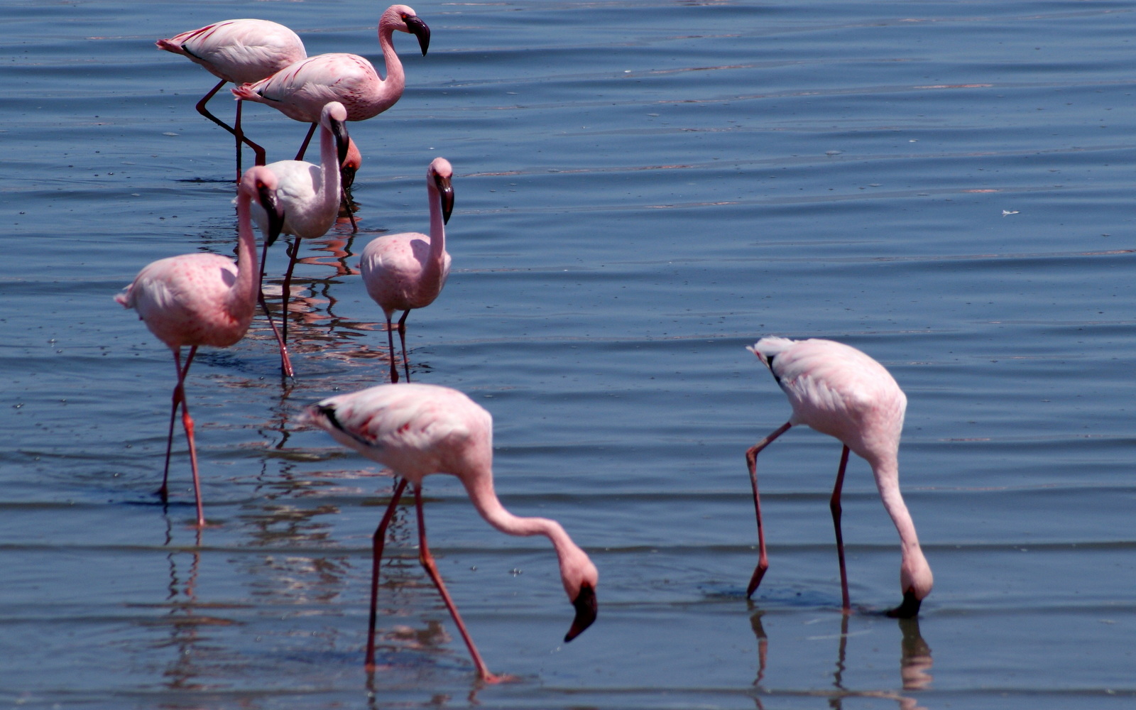 Autant prévenir de suite, je ne vais pas être très objective sur Walvis Bay parce que j’ai adoré cet endroit !!! Les couleurs, la mer au ras des dunes et des flamands roses par milliers… Le flamant était déjà mon animal préféré quand j’avais 5 ans et je trouve qu’il est toujours associé à des paysages fantastiques comme au Kenya, quand on a croisé un vol de flamants au-dessus du lac de Nakuru en petit avion de tourisme… Vous vous souvenez de la scène dans « Out of Africa » quand Robert Redford pilote le petit coucou ? Et bien, c’était la même sans Mozart !!!