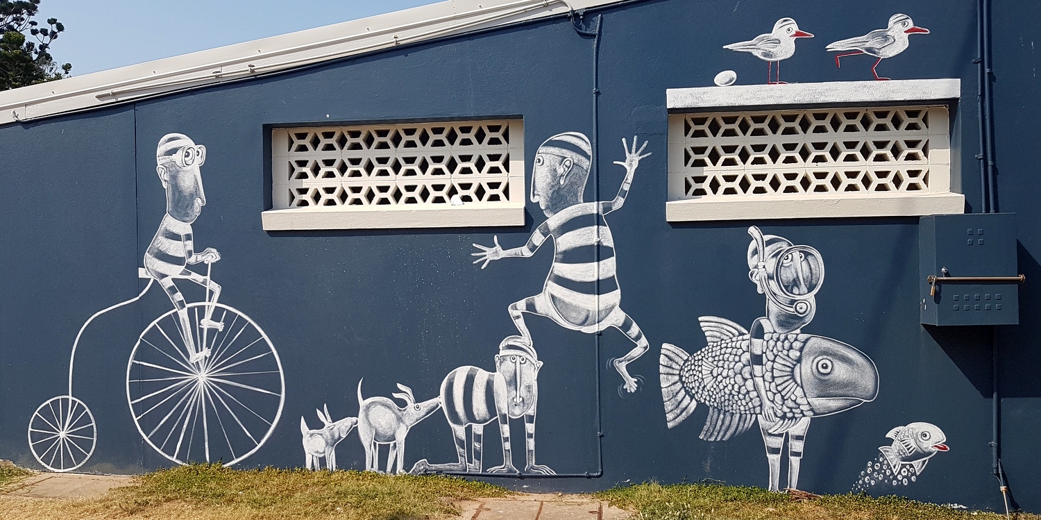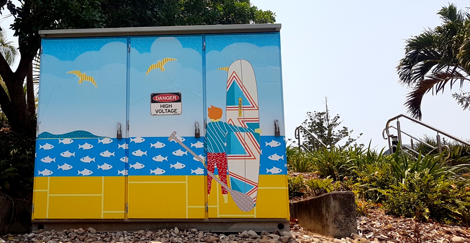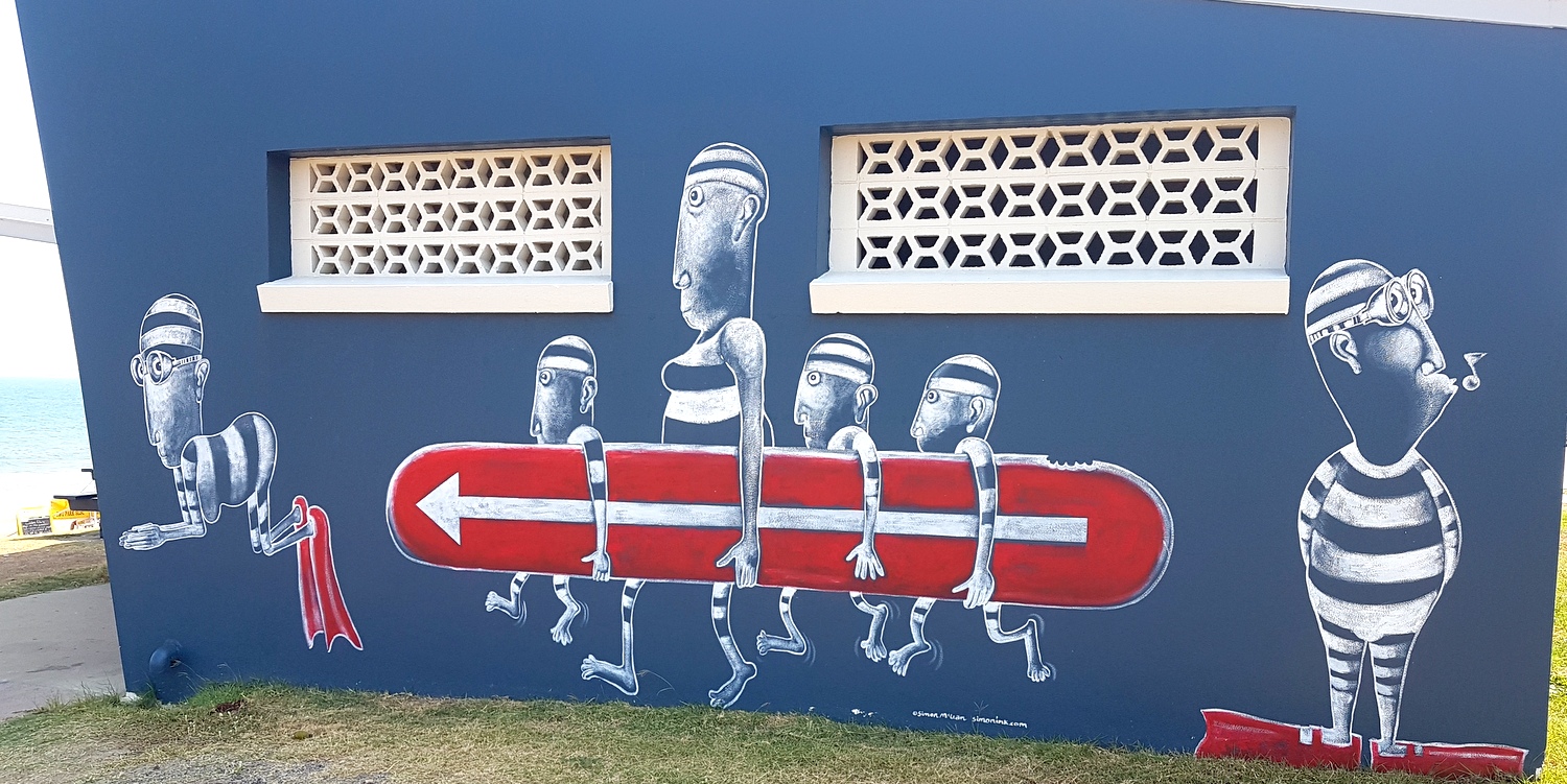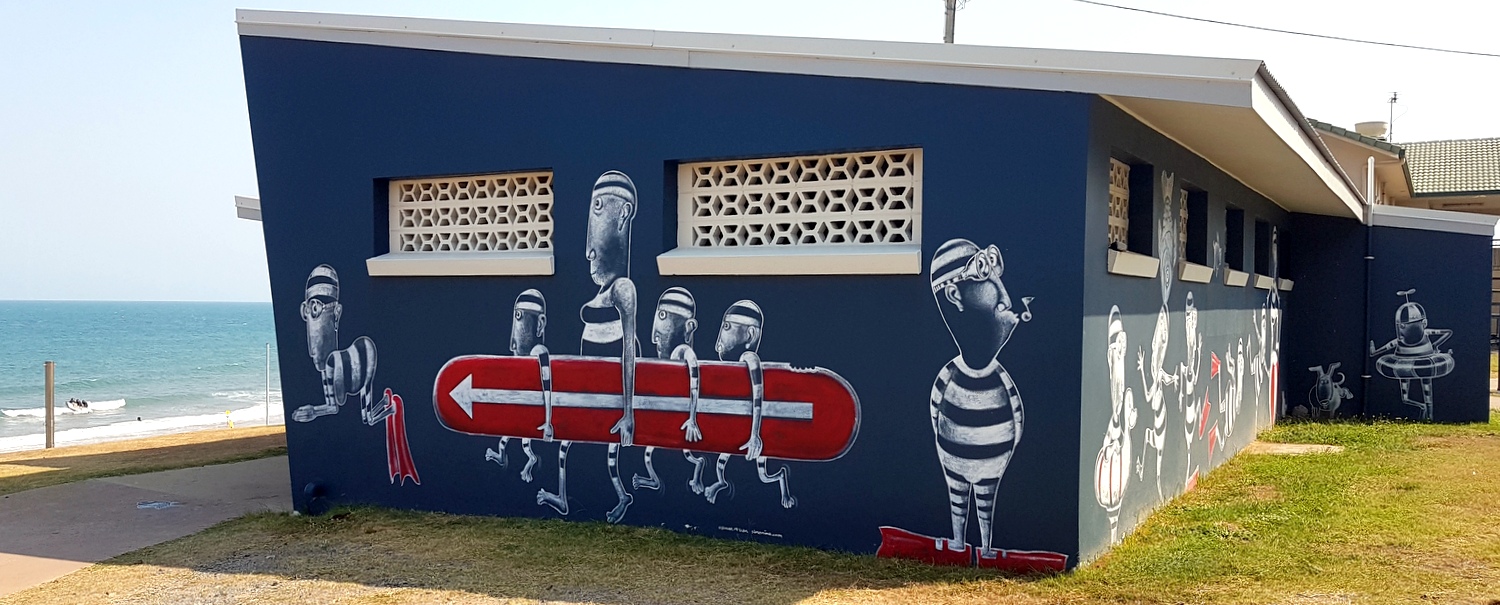 – sur les côtés du Yeppoon Surf Life Saving Club où Simon McLean a créé des dessins sur le thème du sauvetage en mer…