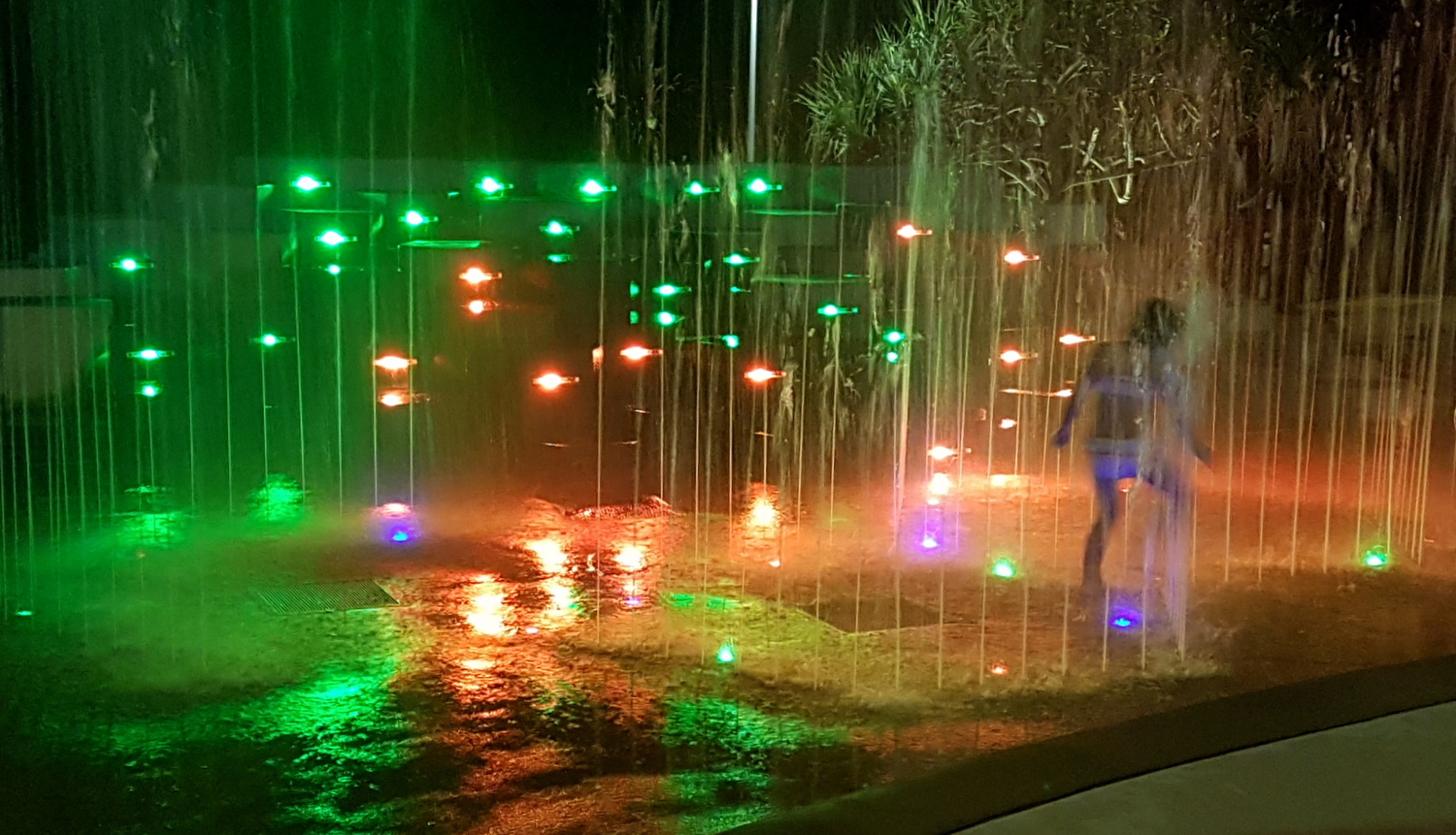 5) Se promener sur l’esplanade qui est superbement aménagée avec un « théâtre romain » qui change de couleur, une aire de jeux pour les enfants (le Kraken) avec des « monstres » en mosaïque et des jets d’eau et de lumières, de nombreuses toilettes d’une propreté irréprochable, des transats en métal et bois fixés face à la mer, des tables-bancs-barbecues pour pique-niquer…